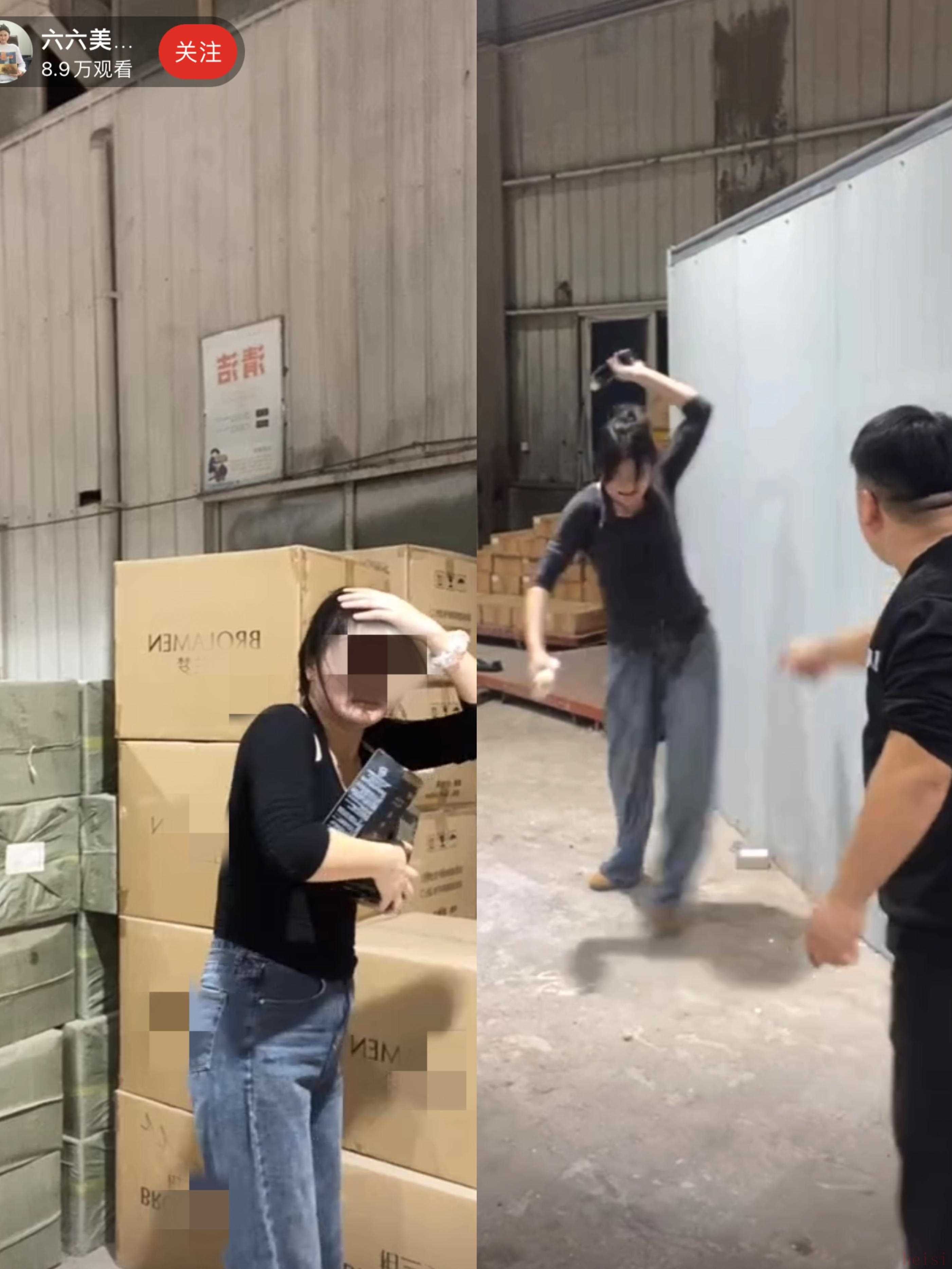 贝壳财经记者注意到,“六六”直播中,一名男性会出镜,双方发生口角时还会打砸手中的产品。