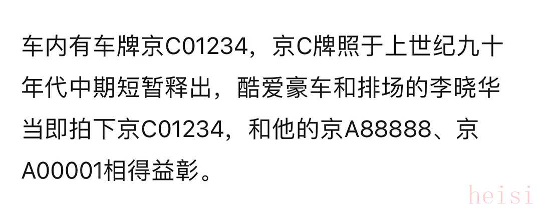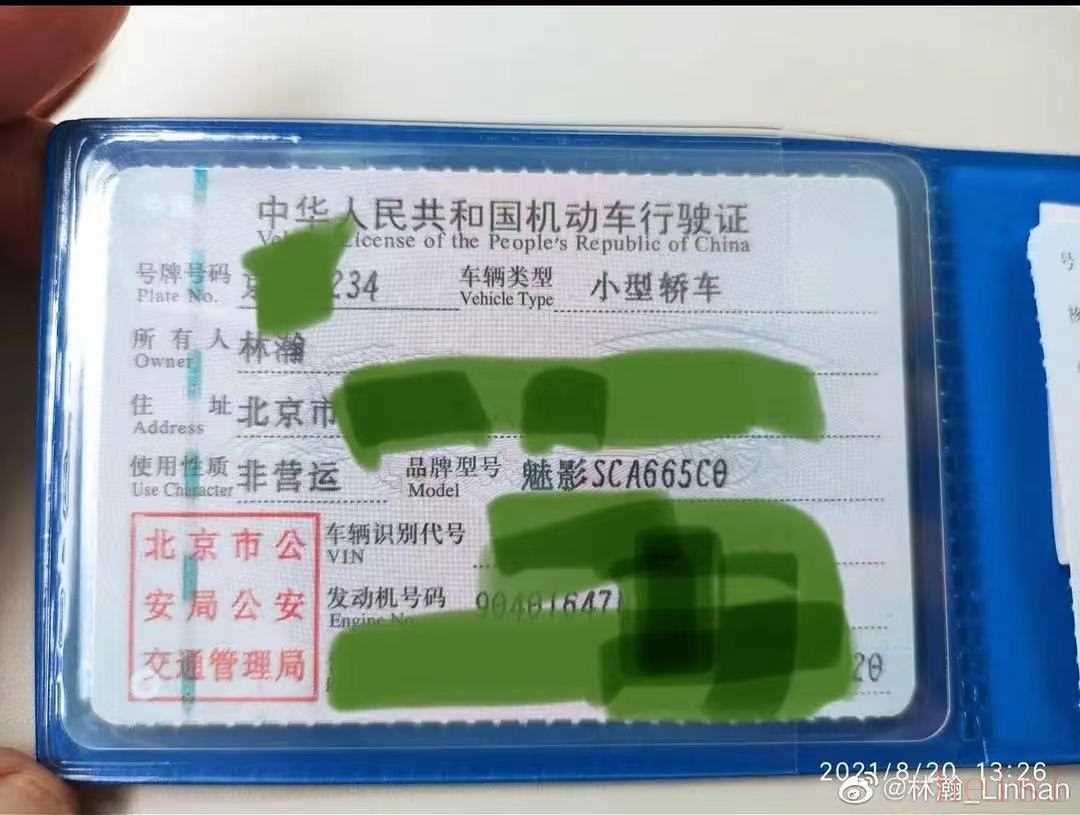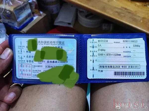 根据他之前晒过的行驶证,有人扒出打码的车牌号应该是京C01234↓