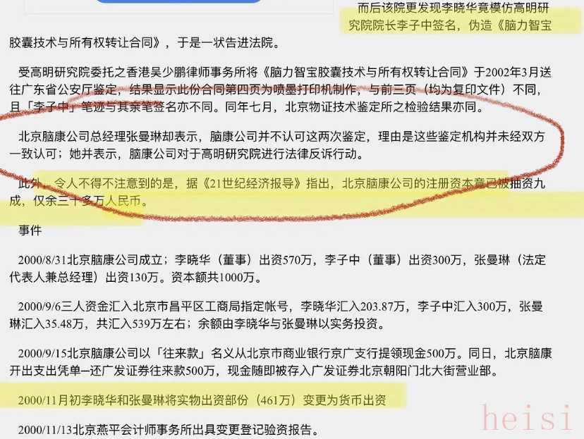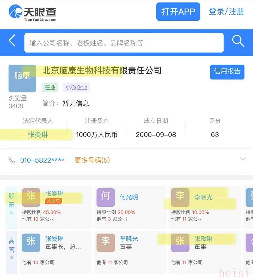 张曼琳旗下的“脑康生物”就是脑力宝的母公司,