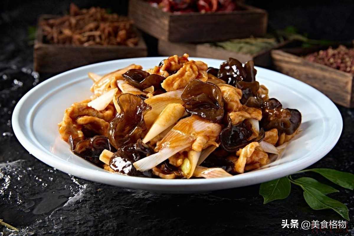4.醋溜成菜:爆香葱姜蒜,下木耳翻炒,倒入肉片和鸡蛋。淋入碗汁,大火快速翻炒至芡汁包裹均匀,淋香油出锅。