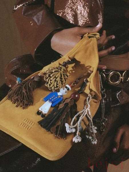 然而,风头却始终抢不过这只自带“包挂”的皮革小袋。流苏、麦穗、珠链、小机器人……相当于买一送六。