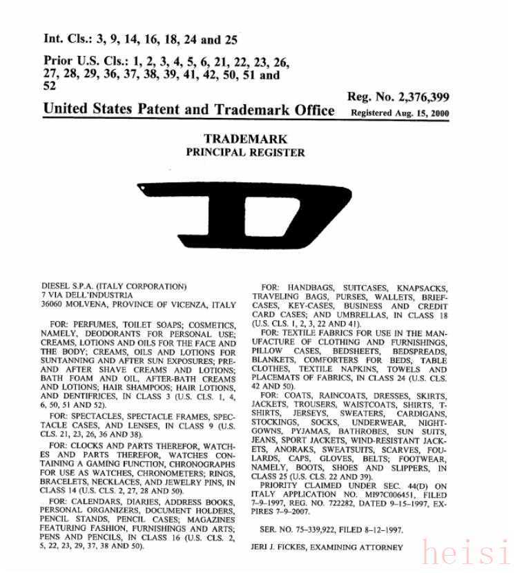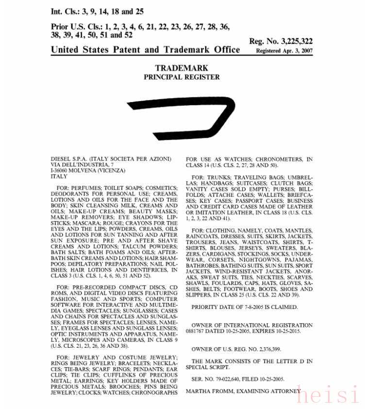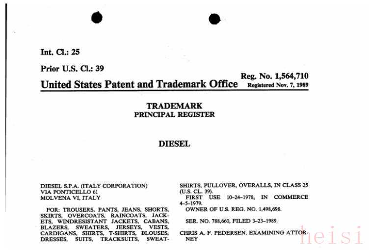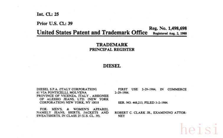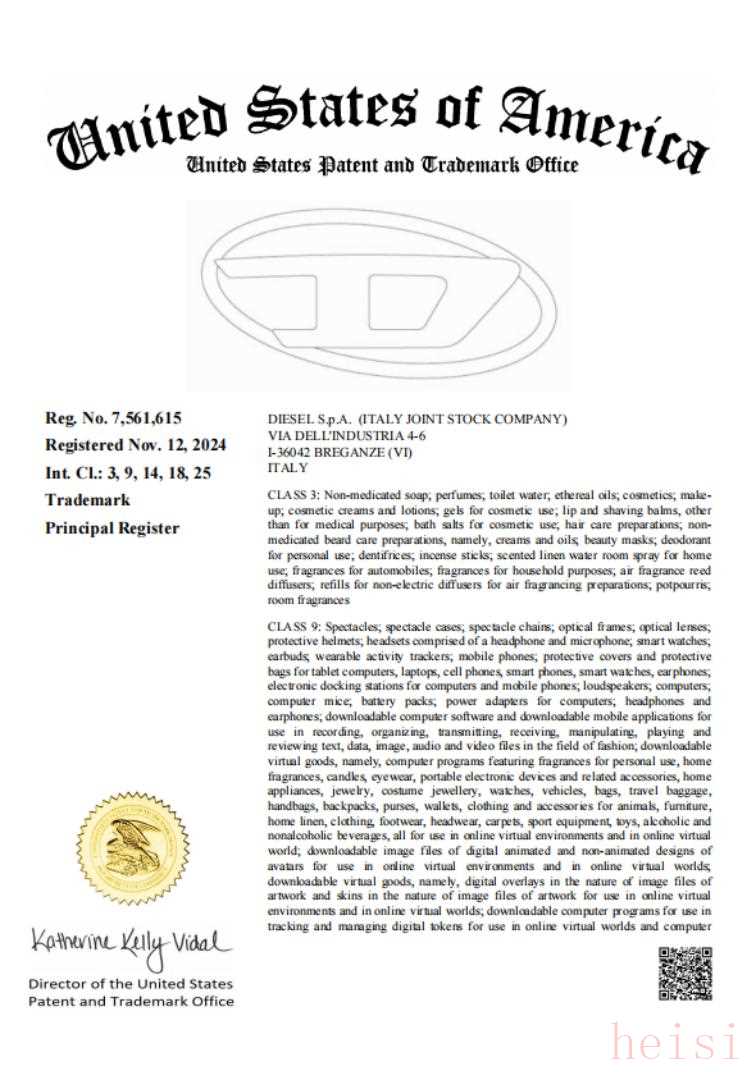 Diesel 在服装、配饰、眼镜、香水等多个领域拥有广泛的商标注册。