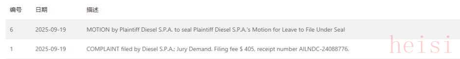 意大利知名品牌Diesel S.p.A.委托Squire Patton Boggs律所发起商标维权案件,涉及到原告名下5个商标,商标号分别为:7561615、1498698、1564710、2376399、3225322,涵盖服装、眼镜、香水、配饰、包袋等多个领域;建议卖家立即排查所有listing、广告关键词、图片、包装是否含有Diesel相关的商标,并及时下架。案件信息:起诉时间:2025.9.19案件号:2025-cv-11381维权类型:商标商标号:7561615、1498698、1564710、2376399、3225322原告品牌:Diesel品牌:Diesel S.p.A.代理律所:Squire Patton Boggs (US) LLP发案地:美国伊利诺伊州