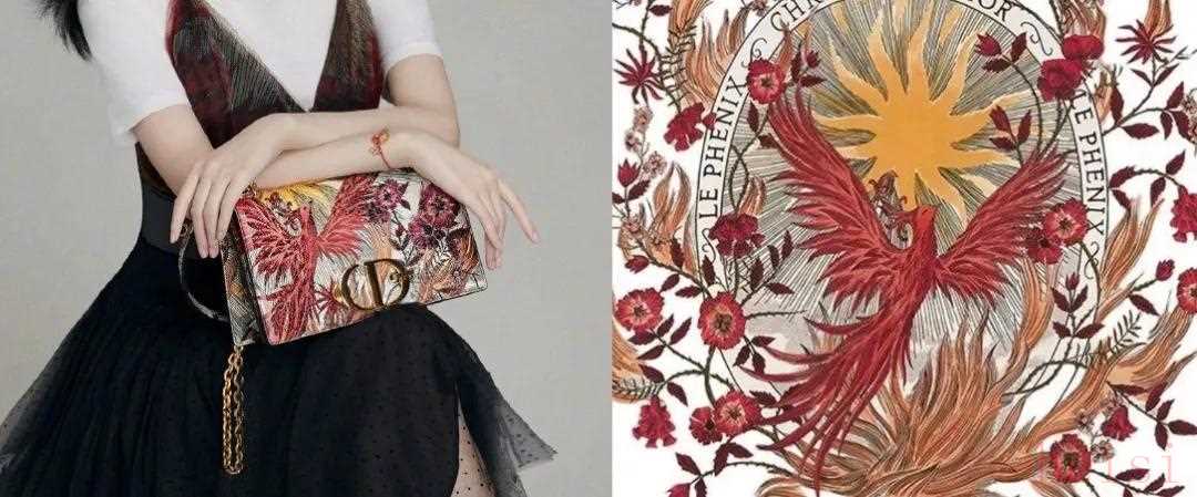 布满了浓郁中国红刺绣的新BOOK TOTE,凤凰翩然飞舞,醒目的Christian Dior