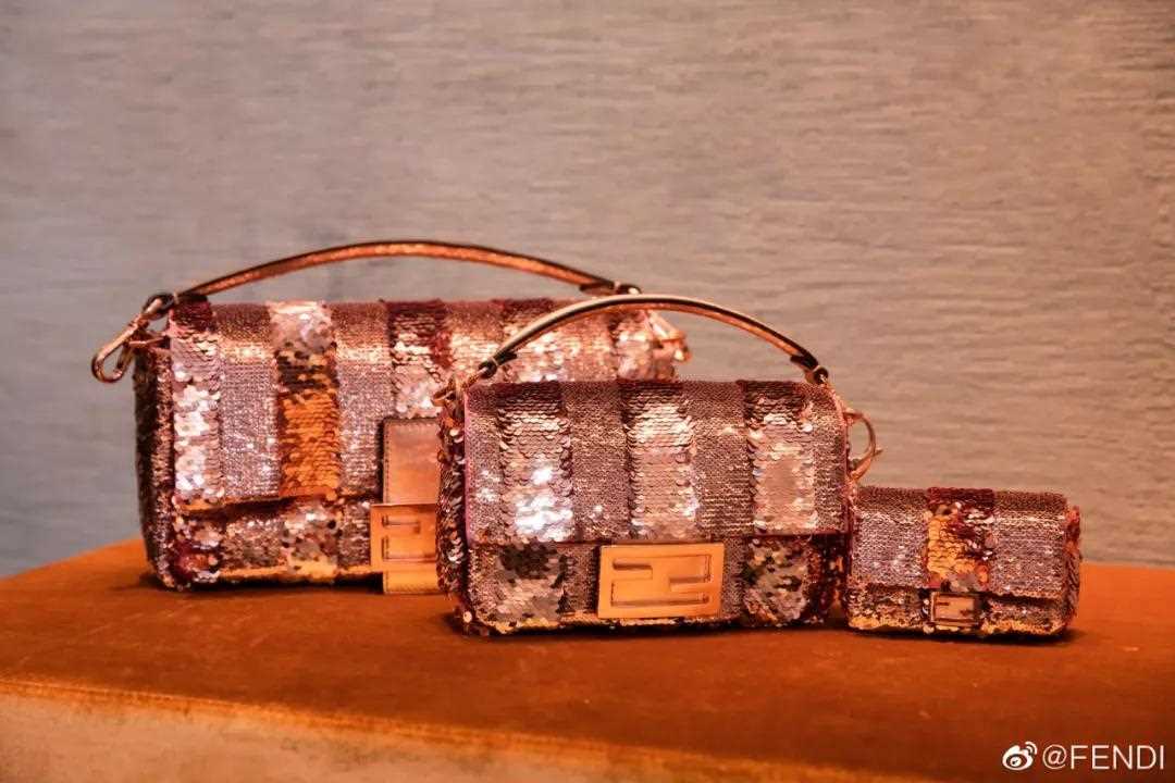 火了好几年的FENDI法棍包也换了新外套,bling~bling~✨✨粉色小闪片刺绣,青春且华丽丽