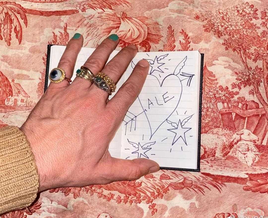 由GUCCI创作总监米开理亲绘“天上星,我的心”的爱心图腾,融合梦幻六芒星点缀酒神包,兼文艺复古兼时尚流行