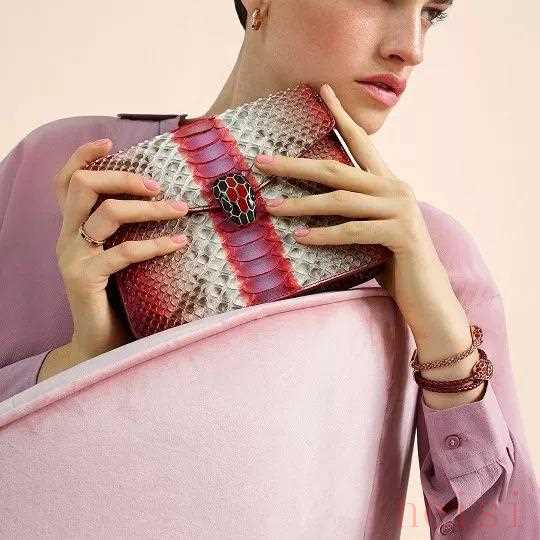 宝格丽最出彩的还是这炸眼球的蟒蛇皮蛇头包,稀有皮质版本。