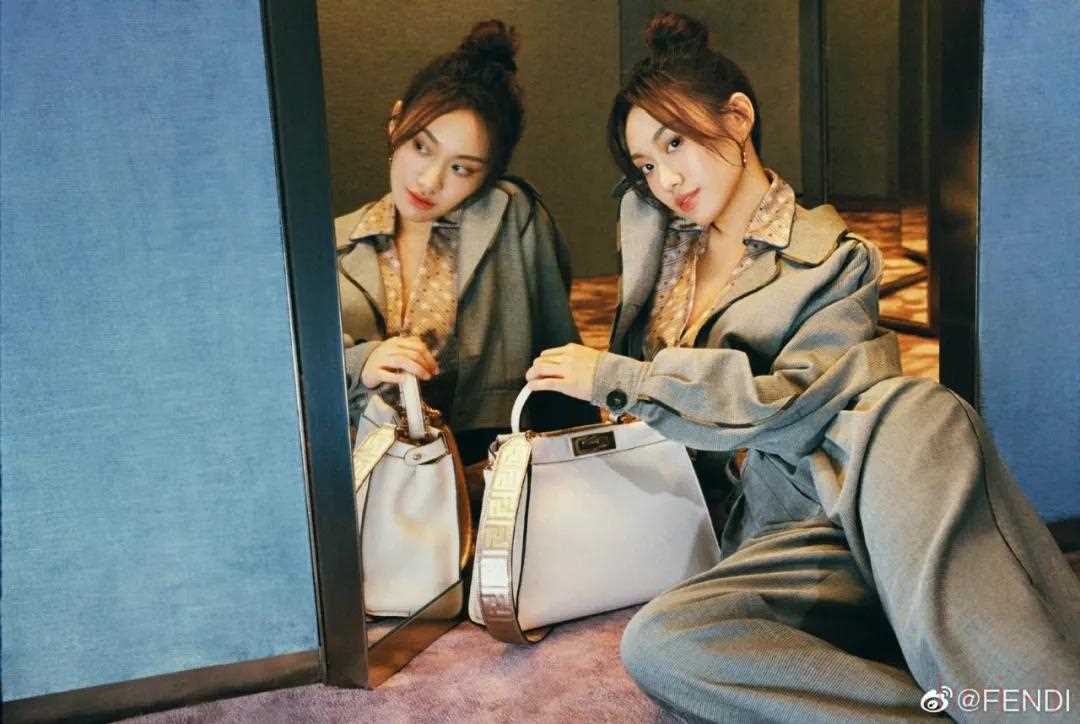 酱紫一个优雅和摩登兼具的LOLA包,周冬雨这般搭配西装,十足优雅lady