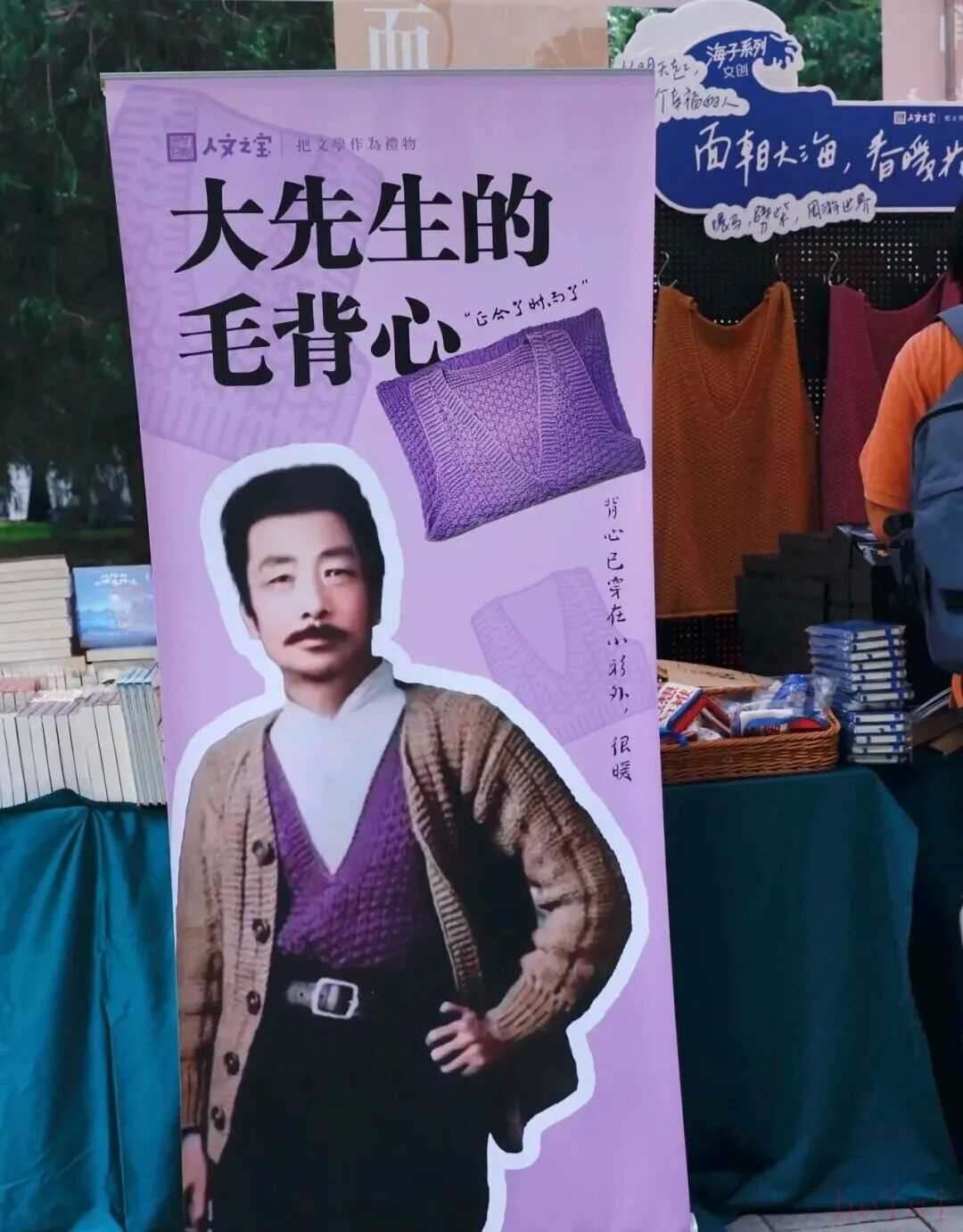 “这就是我一直找的鲁迅同款毛背心!”地坛书市上,一个年轻女孩指着一款紫色毛背心,兴奋地和朋友介绍。