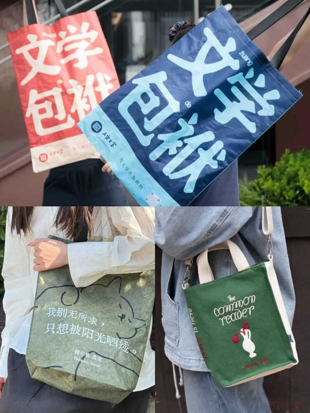 其中各式各样的包袋成为最受欢迎的爆品之一。这些包袋或印着著名作家的名言,或以经典图书封面为灵感,文艺范十足。