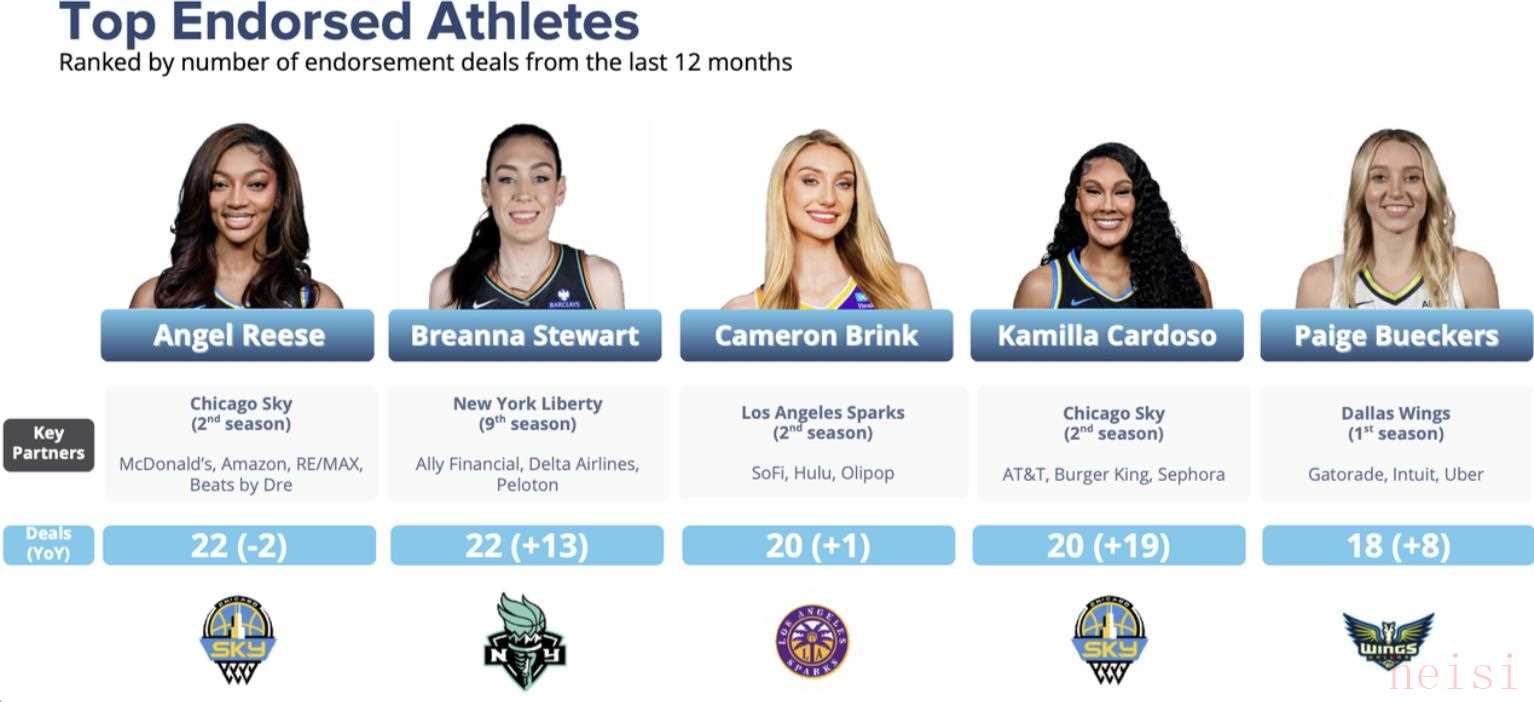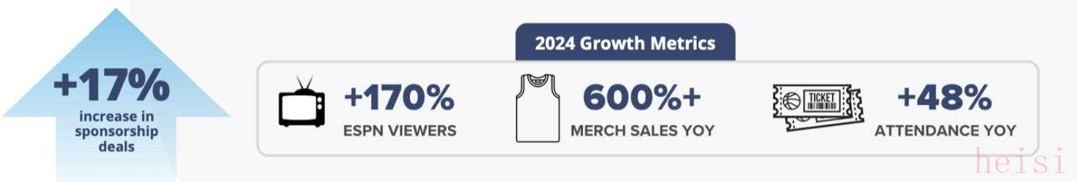 1. "赞助商数量激增:" WNBA的赞助环境发生了显著变化,最突出的表现是参与赞助的"品牌数量大幅增加"。这直接导致了市场热度的提升和商业价值的彰显。