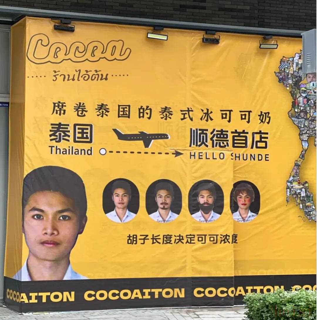 泰国网红茶饮品牌“大胡子冰可可”闯入中国市场,在各大城市街头“刷脸”。该品牌是泰国本土网红,把“创始人证件照”当作品牌logo,主打冰可可产品,由胡子长度决定可可浓度的创意。这个创意,也只能是泰国制造了吧。