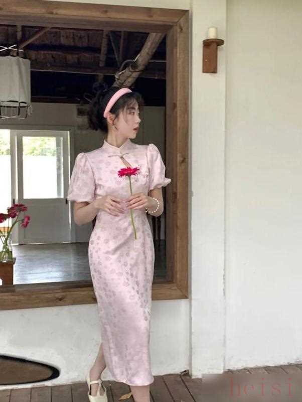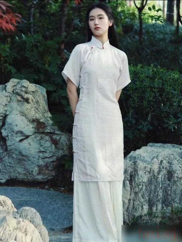 设计师们也在“搞事情”。有品牌把苎麻、棉麻这些透气面料塞进旗袍,解决了夏天穿丝绸“黏皮肤”的痛点;还有的在盘扣上玩创新,用亚克力、珍珠代替传统金属,“既保留了盘扣的仪式感,又不会刮头发”。更绝的是穿搭思路——以前穿旗袍得配高跟鞋、盘发,现在叠穿牛仔裤、搭运动鞋成了新潮流,“裙裤叠穿遮小腿肉”“短旗袍配长袜显腿直”的技巧在小红书被转爆,连妈妈辈都跟着学。