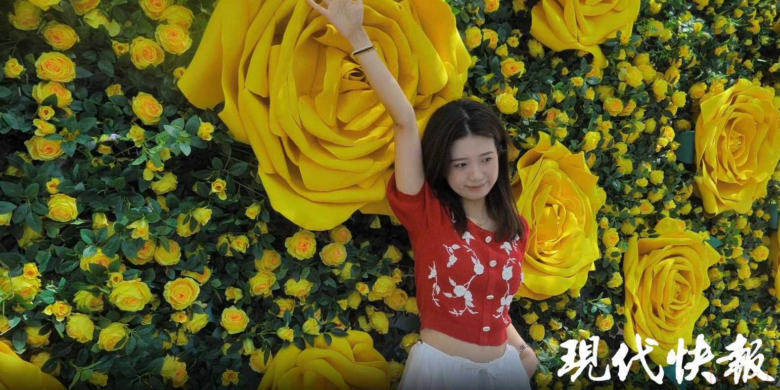 现场,吸引了很多路过市民驻足打卡。“我是在网上刷到的,特意过来拍照打卡。”在徐州读大学的王同学表示。现场很多人在拍照,还有人带来了专业设备。虽然徐州仍是高温,但是没有减少大家的热情。“万朵黄玫瑰花墙是特意为了七夕准备的,也希望为徐州这座城市增添浪漫节日氛围。”徐州金鹰工作人员表示。
