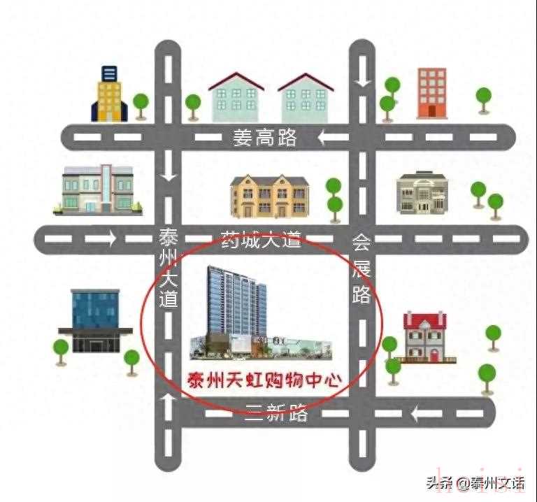 泰州天虹购物中心位于医药高新区药城大道797号,和西边的东方温莎小镇靠得很近,周边已建有不少居民小区。
