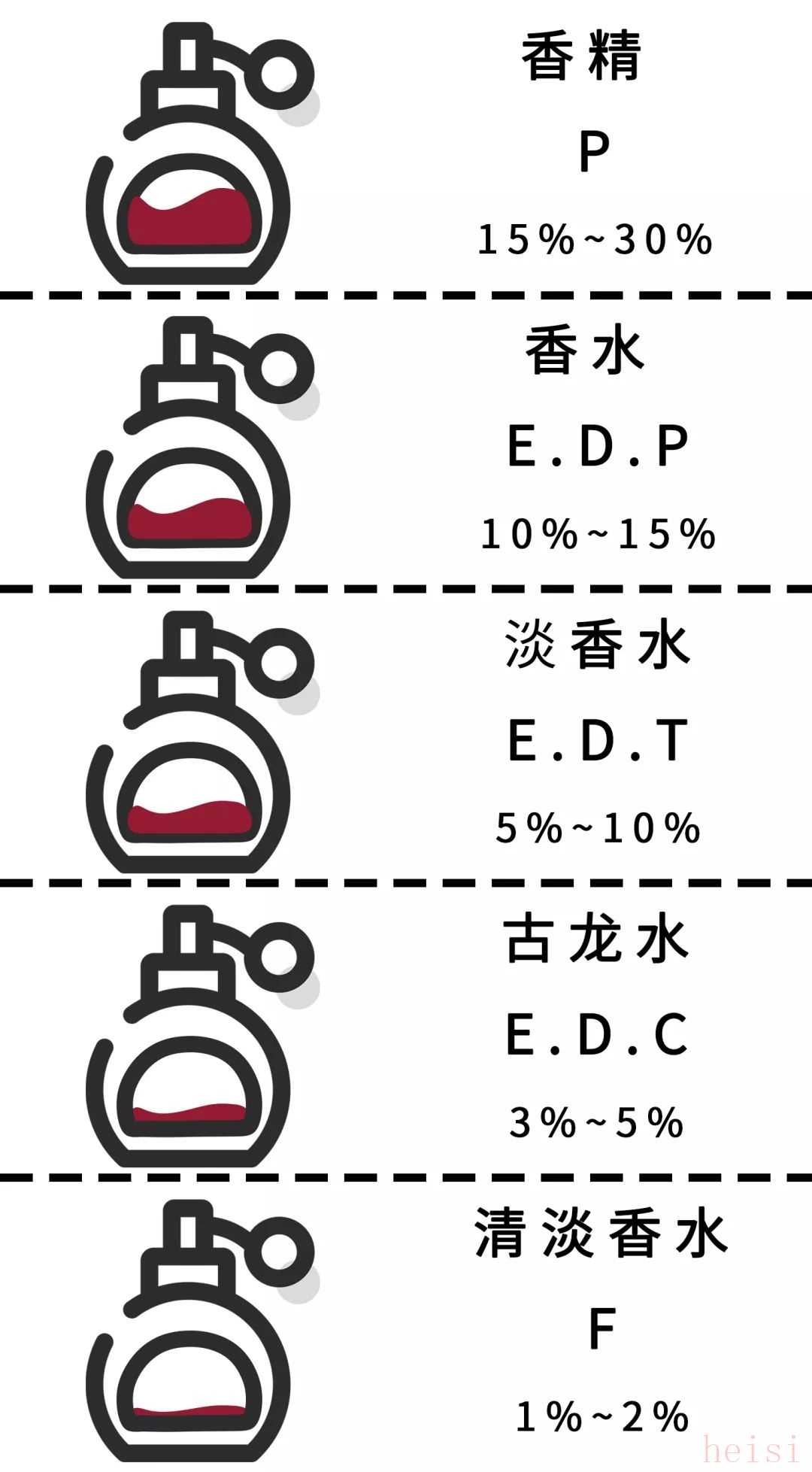 - 淡香水:因为香料的浓度只有5%~10%,所以味道会比较清淡,而它的留香时间只有3~4h。