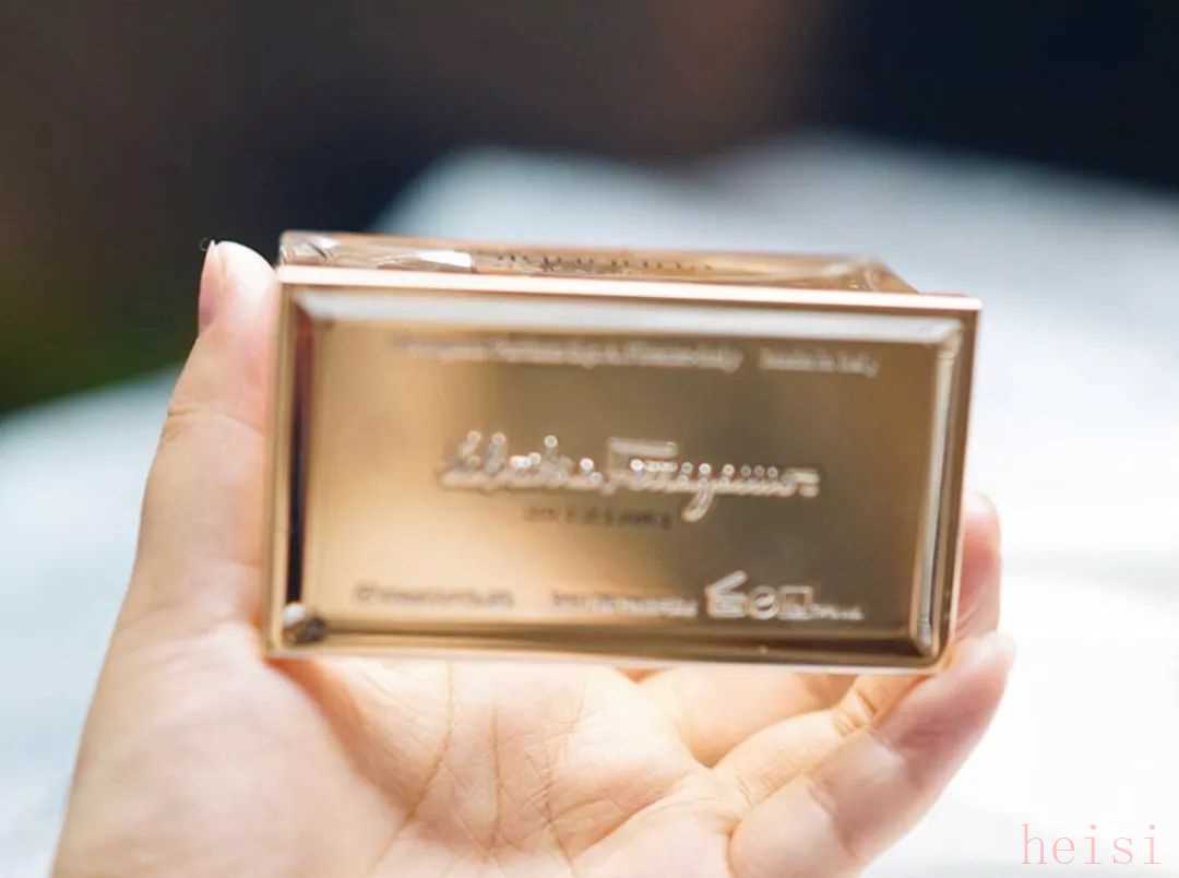 这款方形的透明瓶身,搭配金色的金属配饰非常精致,还有他们家经典的双层裸色螺纹缎带,从包装上就散发着优雅的魅力。