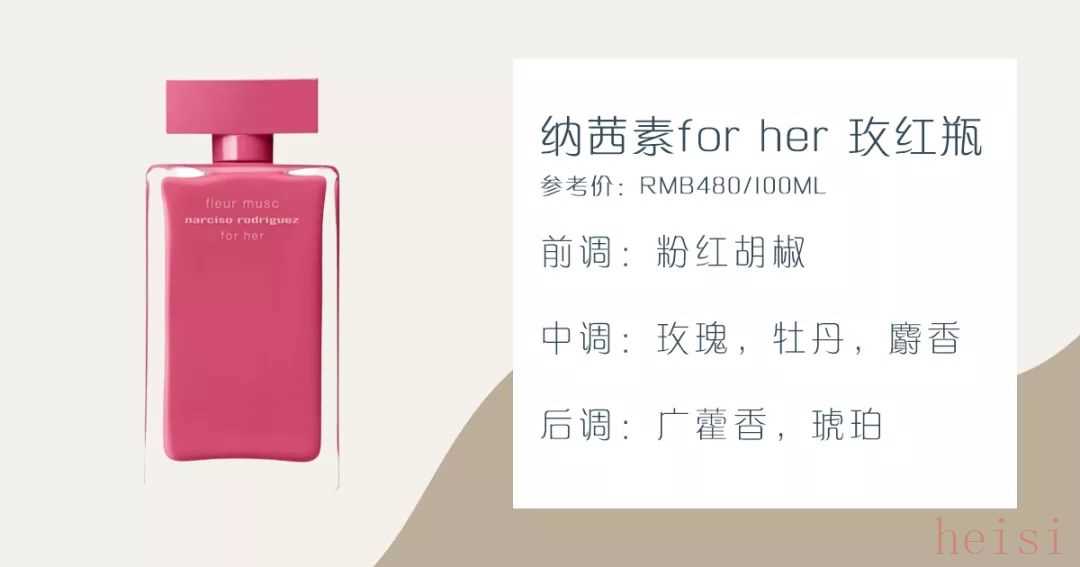 纳西素for her系列里,玫红瓶是颜值最高的,香调也是最女人的,我觉得比较适合轻熟女来用。