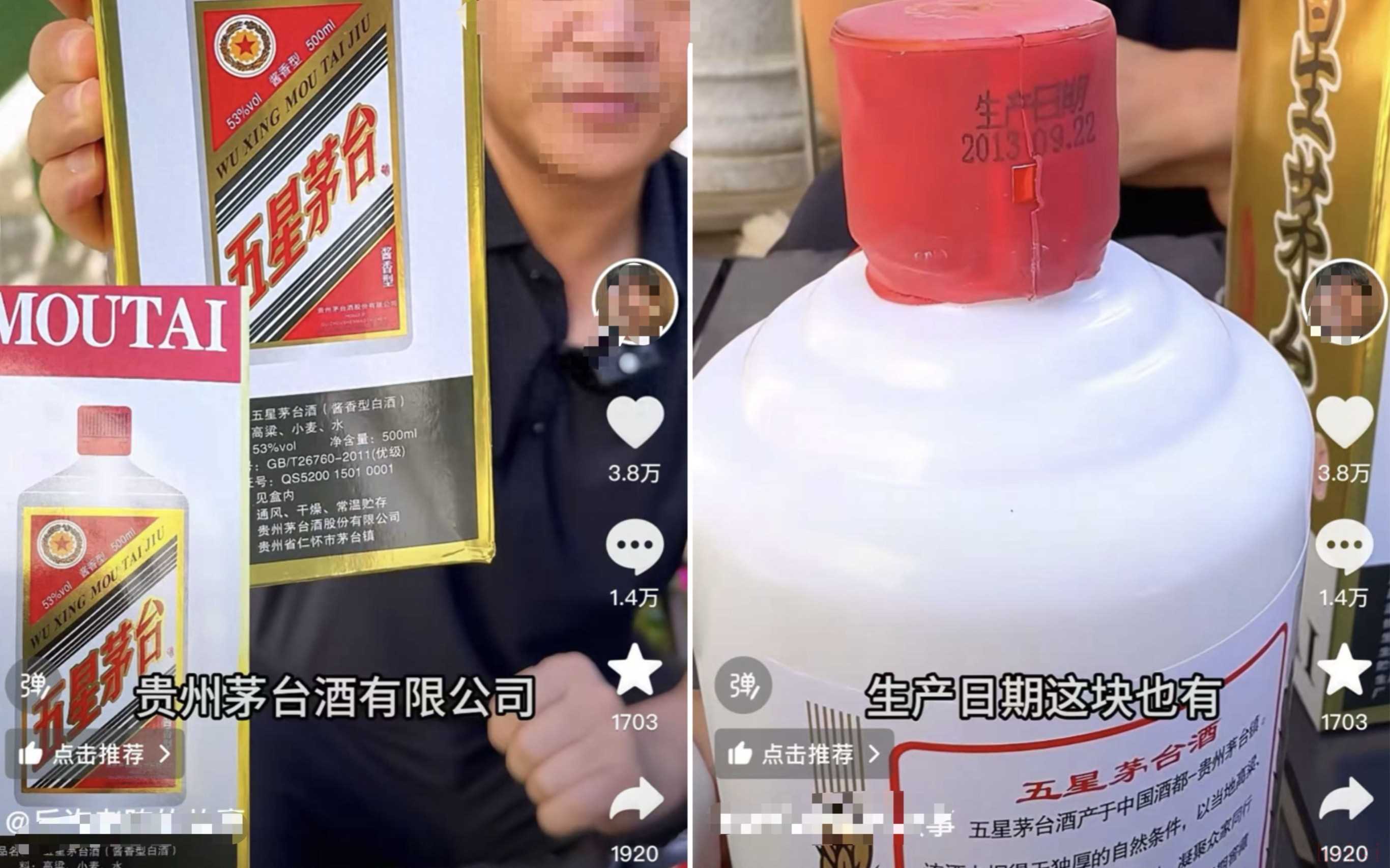 近日,账号名为“反诈老陈的故事”的网络主播通过其视频账号,展示在某直播间下单购买的53度、名为“五星茅台”的酒,“合140元两瓶五星茅台,我个人认为,这个价格有点不太符合,这个生产厂家名(贵州茅台酒股份有限公司)都是一样的”。该主播质疑产品是否为正品,并喊话贵州茅台酒股份有限公司对产品进行鉴别。在同日随后发布的视频中,他又提到,此事发酵后,其购买店铺的该产品链接已下架。