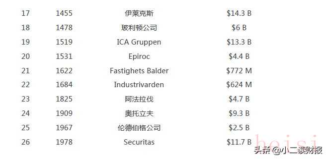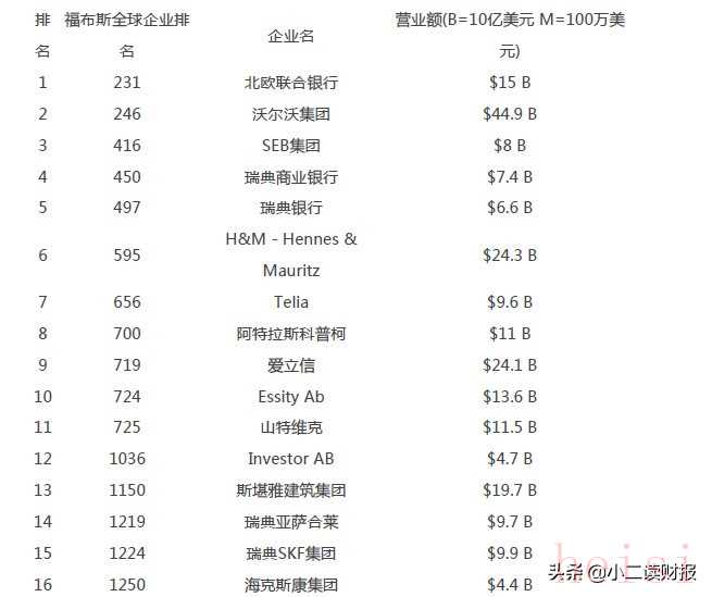 瑞典作为发达国家,拥有着沃尔沃集团、爱立信以及SEB集团等世界知名企业,极为强劲的经济实力。在福布斯2019全球企业2000强排行榜中拥有26家企业上榜。