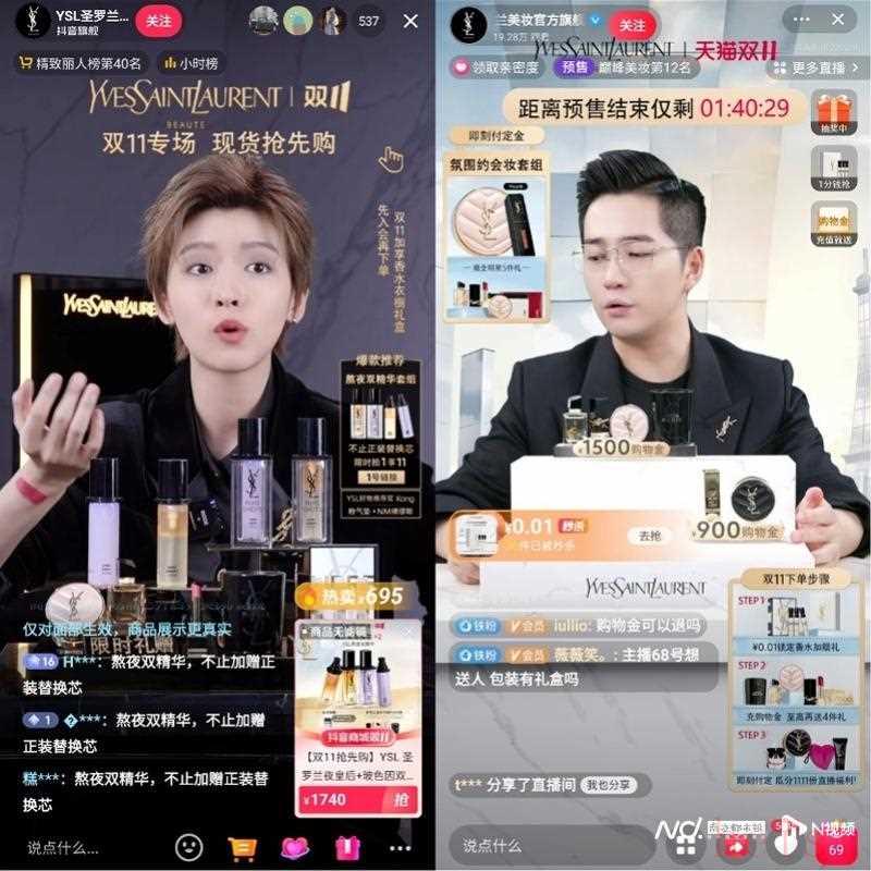 南都记者留意到,目前YSL在淘宝和抖音都有官方旗舰店直播间,并且都保持着日播的频率,两个直播间销售的产品机制也近乎一致。同样在抖音日播的海外美妆大牌还包括雅诗兰黛、纪梵希、赫莲娜、兰蔻、修丽可、SK-II等。