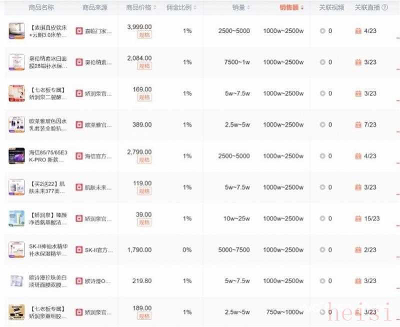 疯狂小杨哥本人,最近一场直播在10月26日,在此之后,双11大促期间,疯狂小杨哥也暂无直播带货记录。蝉妈妈数据显示,近30天内,在疯狂小杨哥直播间,销售额最高的产品是一款价格3999元的真皮软床,销量为2500-5000件,销售额为1000万到2500万。在他的直播间,SK-II神仙水同样是销售额靠前的商品,近30天内销量5000-7500件,销售额为1000万到2500万,销售店铺同样为品牌的抖音官方旗舰店。