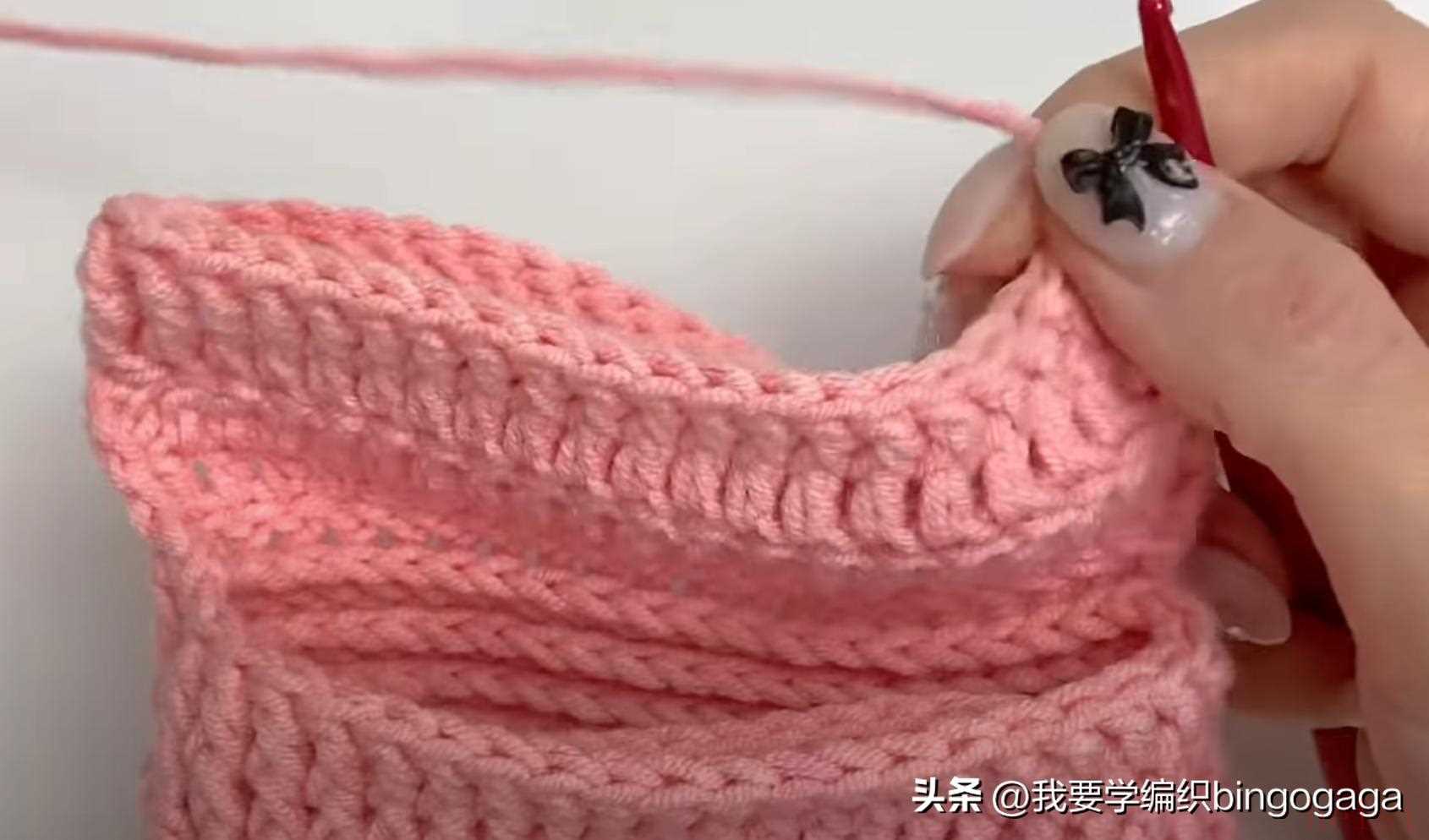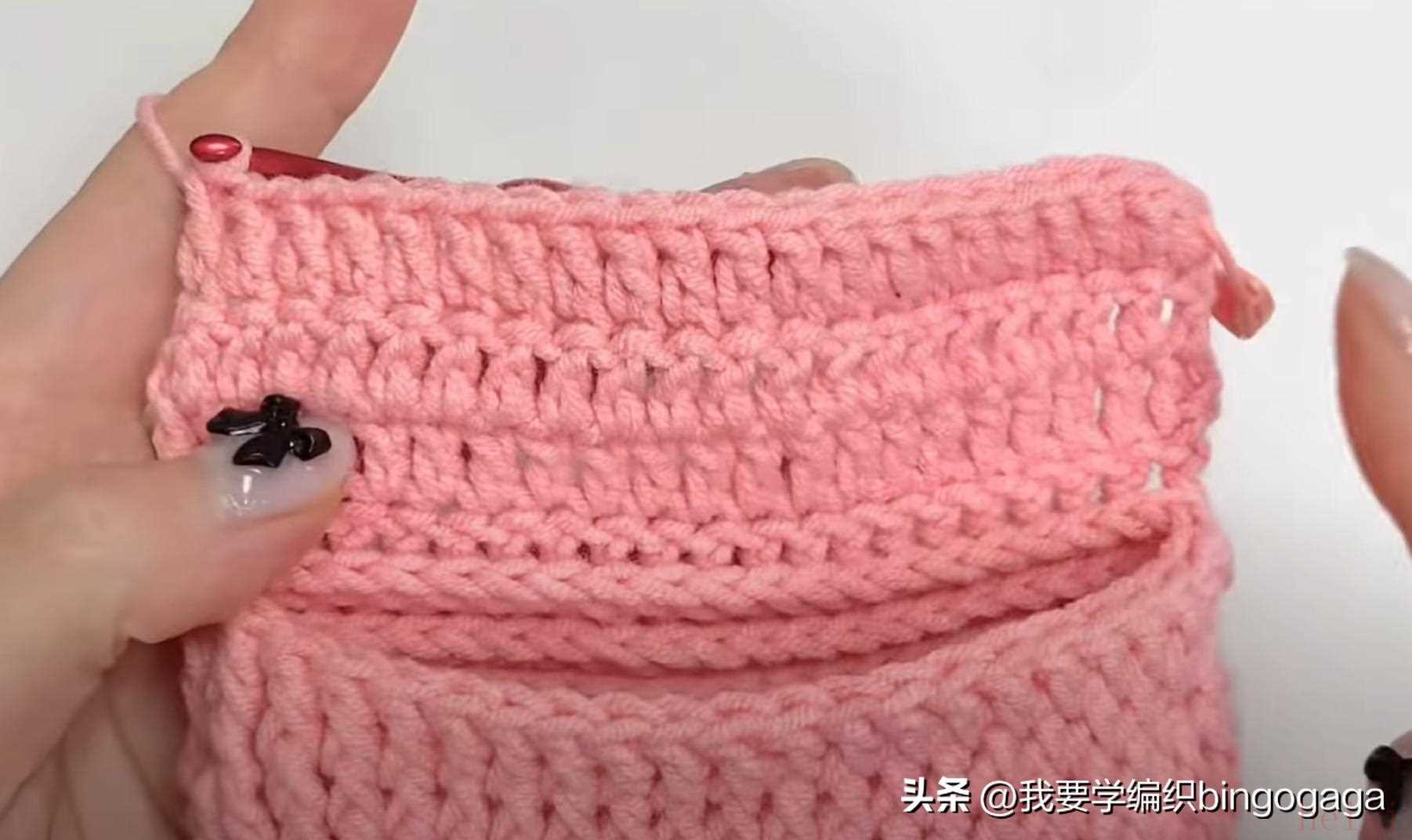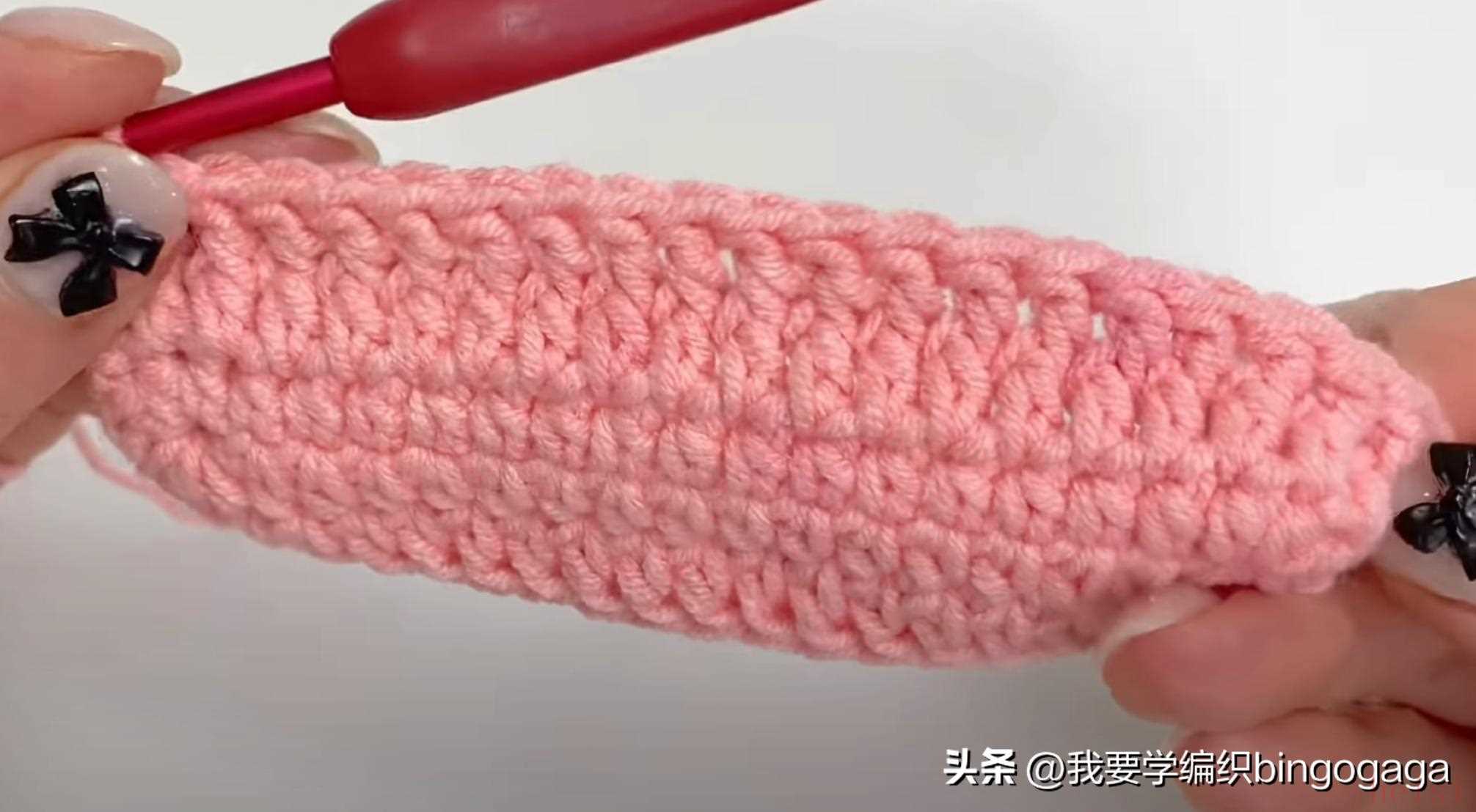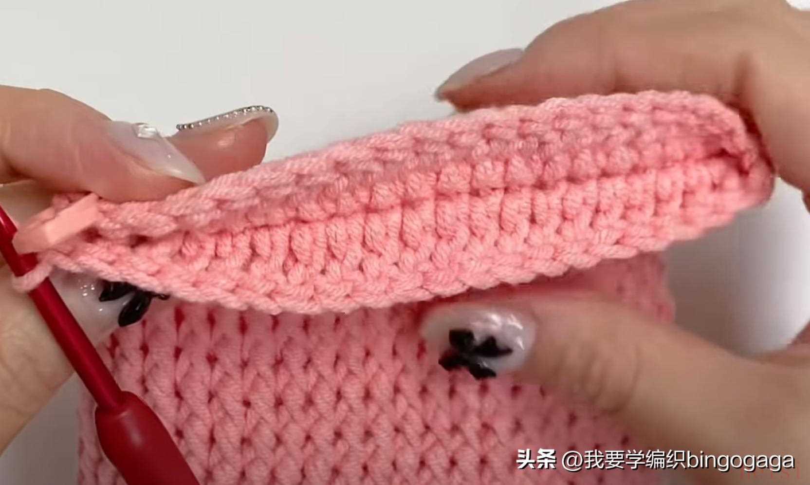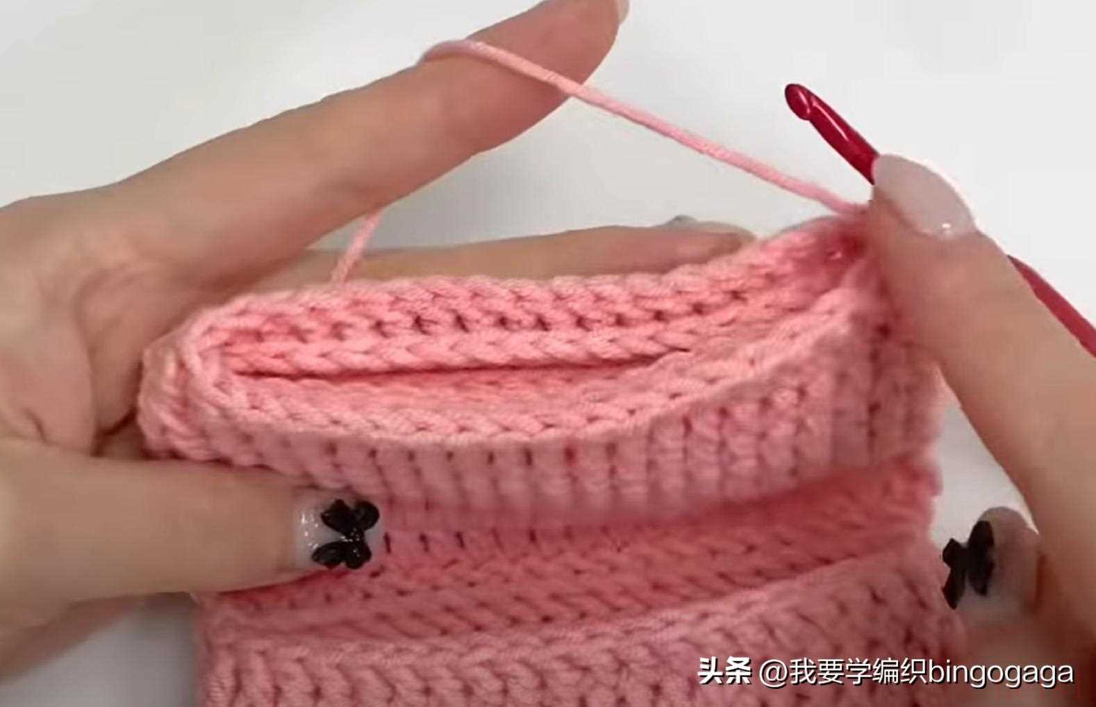 第2圈:42长;第3圈:1放2(外钩长针),19针外钩长针,1放2*2针(外钩长针),19针外钩长针,1放2(外钩长针),共46针;第4-20圈:46针外钩长针;第21圈:外钩长针2并1,19针外钩长针,外钩长针2并1*2次,19针外钩长针,外钩长针2并1,42针;第22-23圈:42针外钩长针。