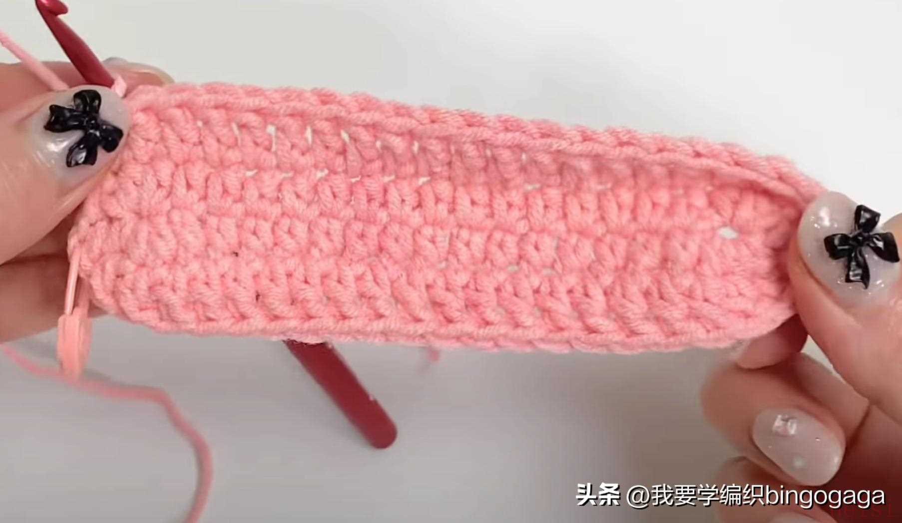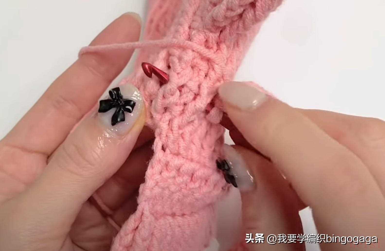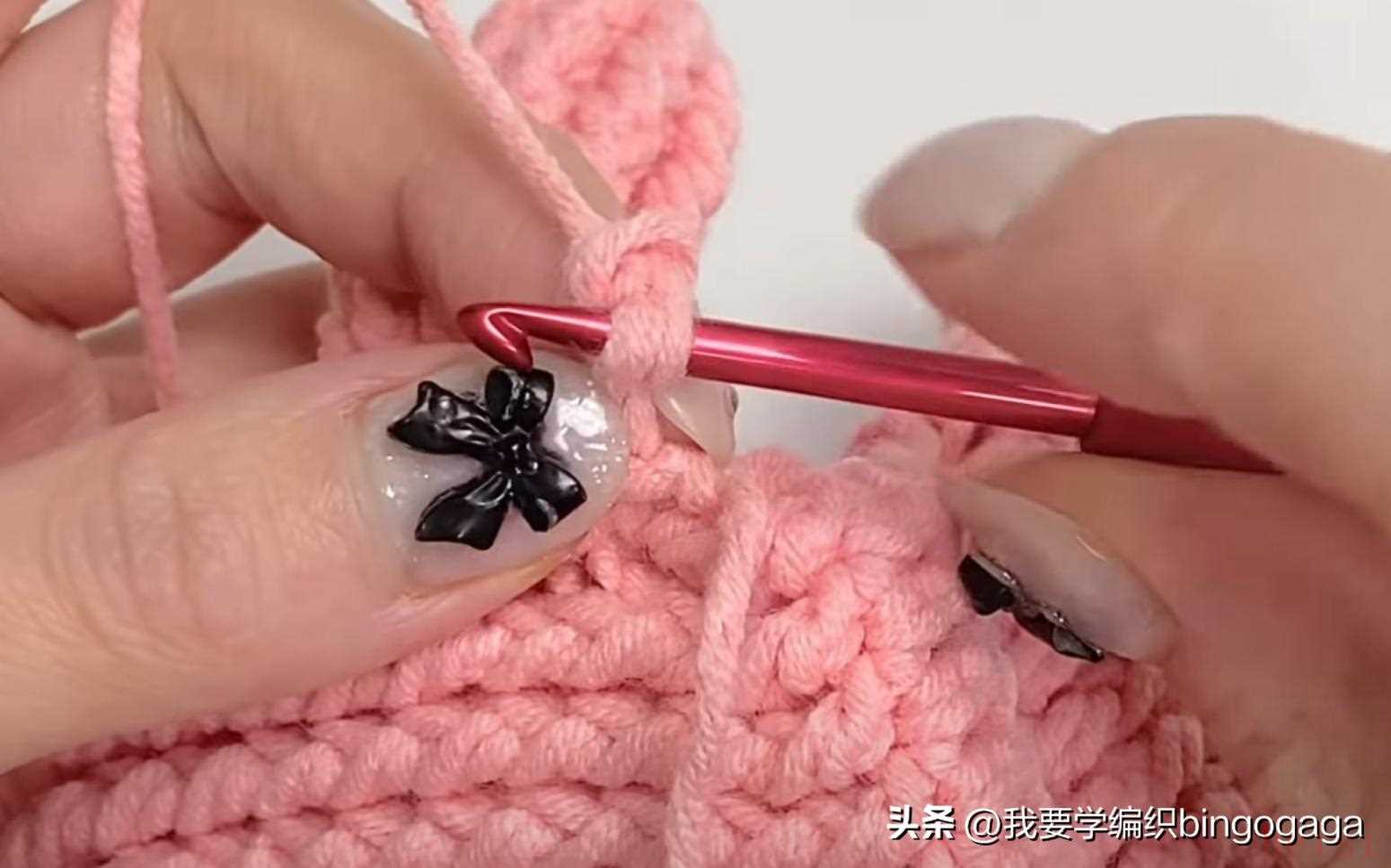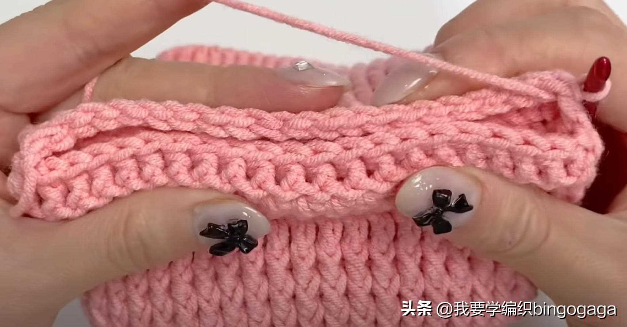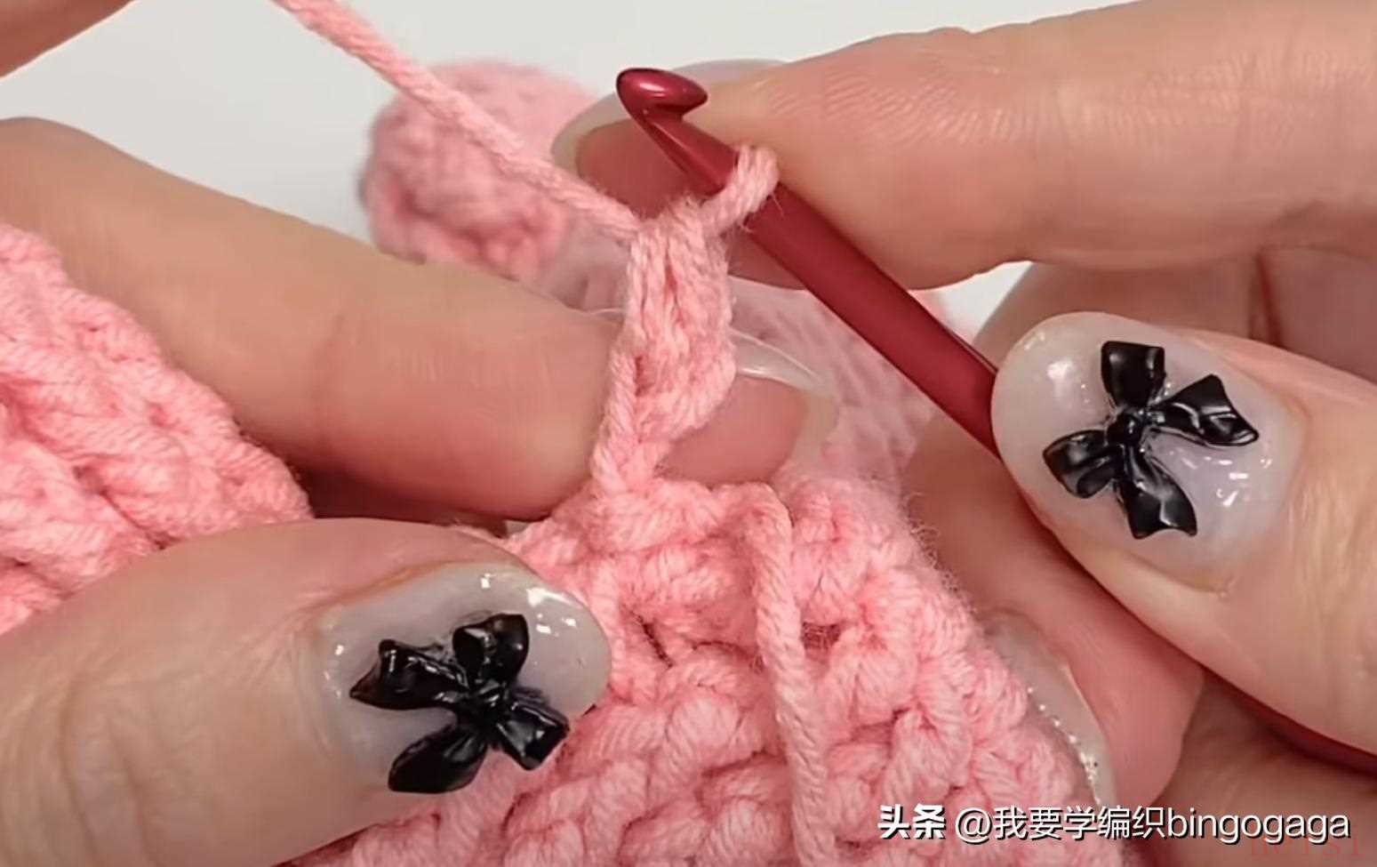 第2圈:42长;第3圈:1放2(外钩长针),19针外钩长针,1放2*2针(外钩长针),19针外钩长针,1放2(外钩长针),共46针;第4-20圈:46针外钩长针;第21圈:外钩长针2并1,19针外钩长针,外钩长针2并1*2次,19针外钩长针,外钩长针2并1,42针;第22-23圈:42针外钩长针。
