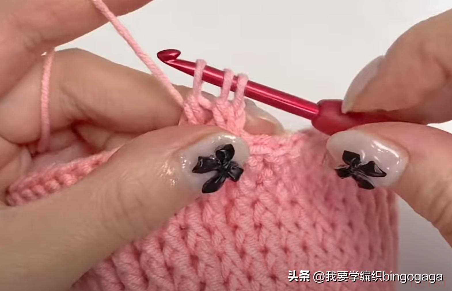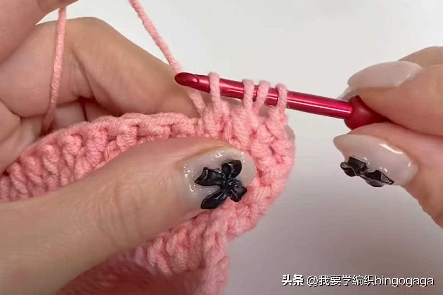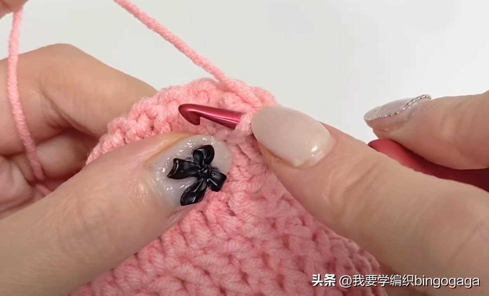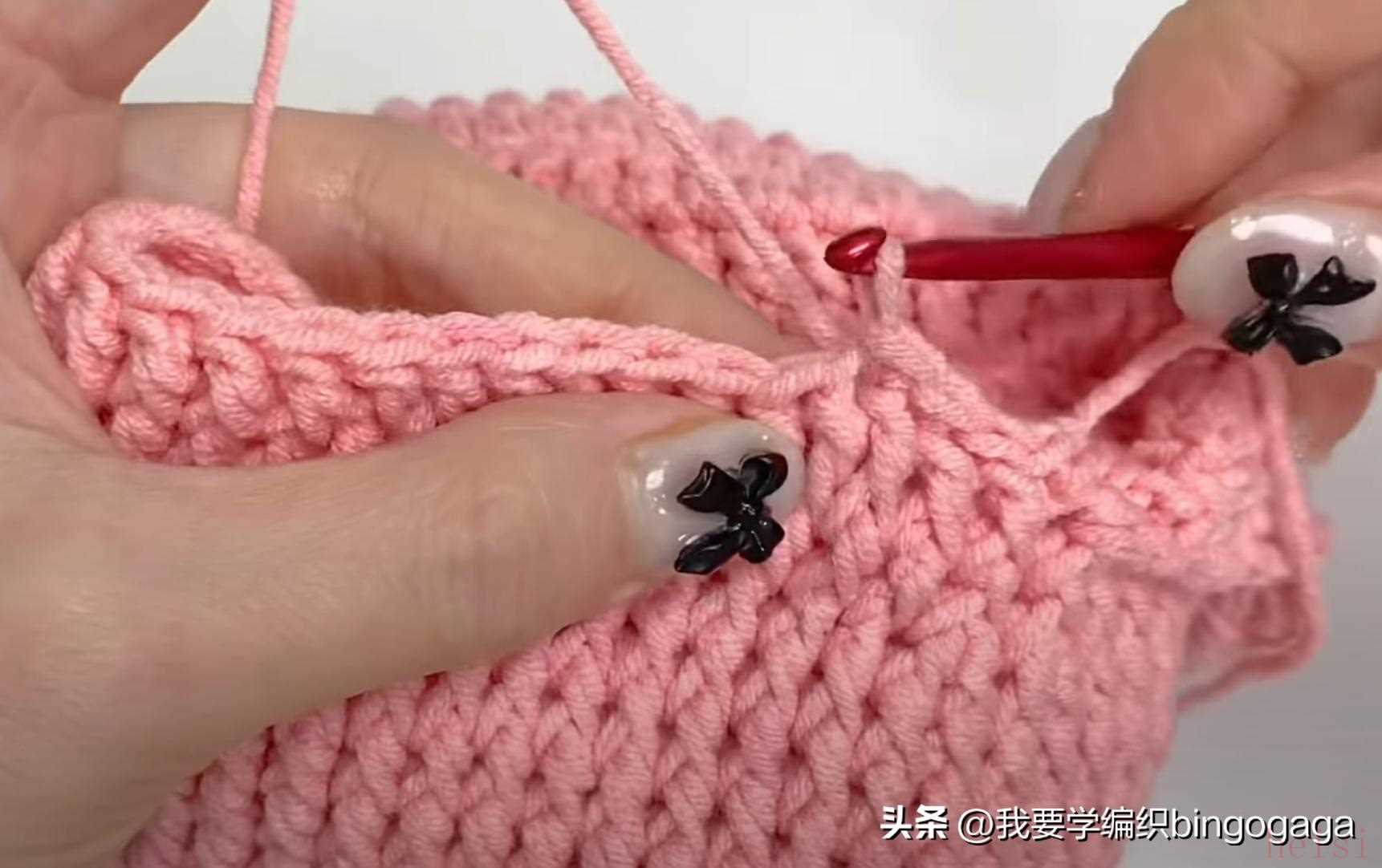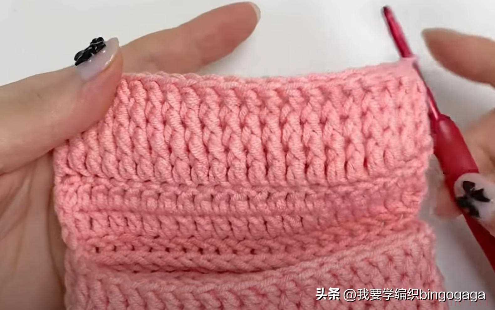 第2圈:42长;第3圈:1放2(外钩长针),19针外钩长针,1放2*2针(外钩长针),19针外钩长针,1放2(外钩长针),共46针;第4-20圈:46针外钩长针;第21圈:外钩长针2并1,19针外钩长针,外钩长针2并1*2次,19针外钩长针,外钩长针2并1,42针;第22-23圈:42针外钩长针。