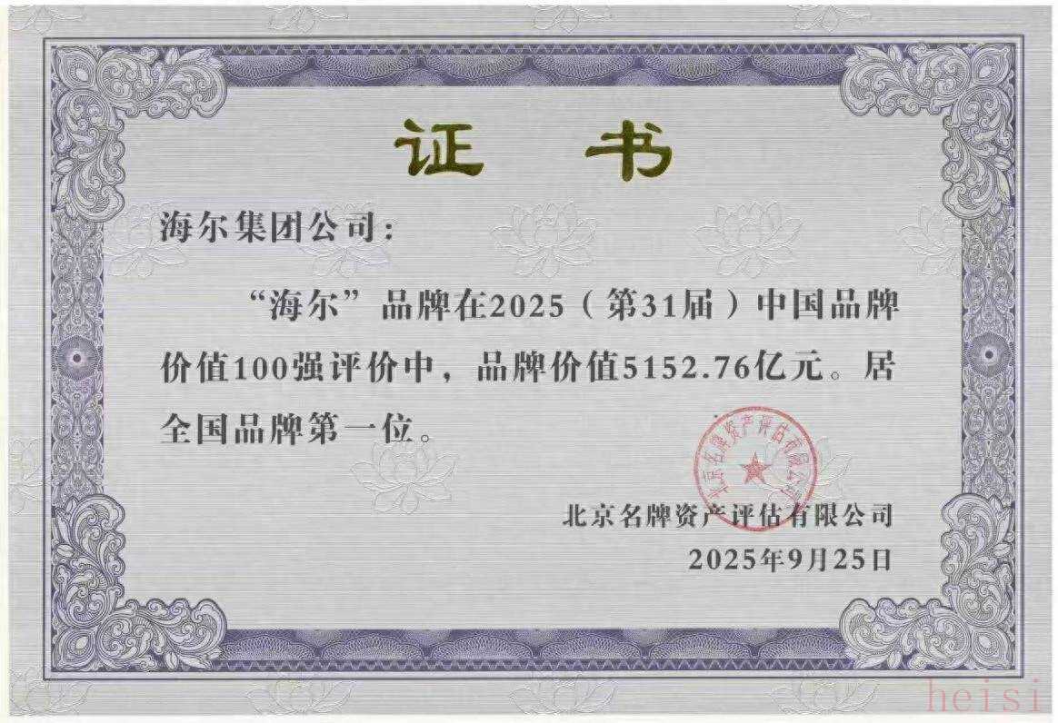 根据2025年中国品牌价值100强榜单的发布,"海尔"再次凭借其强大的品牌实力和创新竞争力,"连续第24年"荣登榜首。