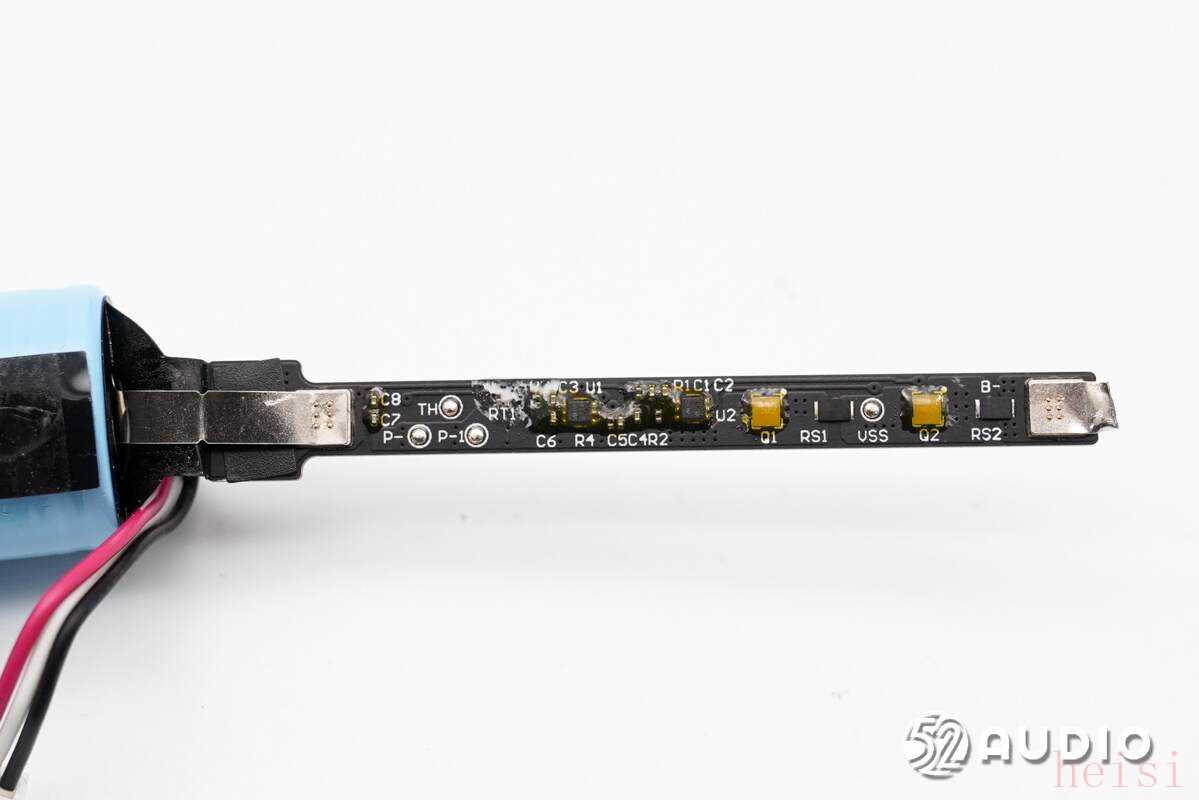 电池保护板上的保护芯片特写,用于电池的过充电、过放电、过电流等保护。
