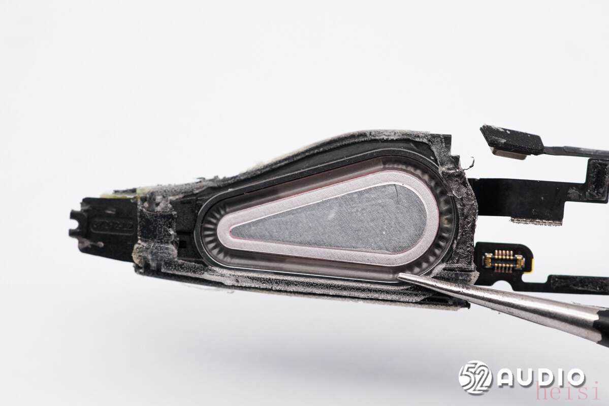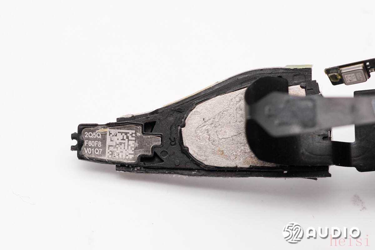 扬声器模组背面特写,镭雕信息“2Q5Q F60F8 V01Q7”。