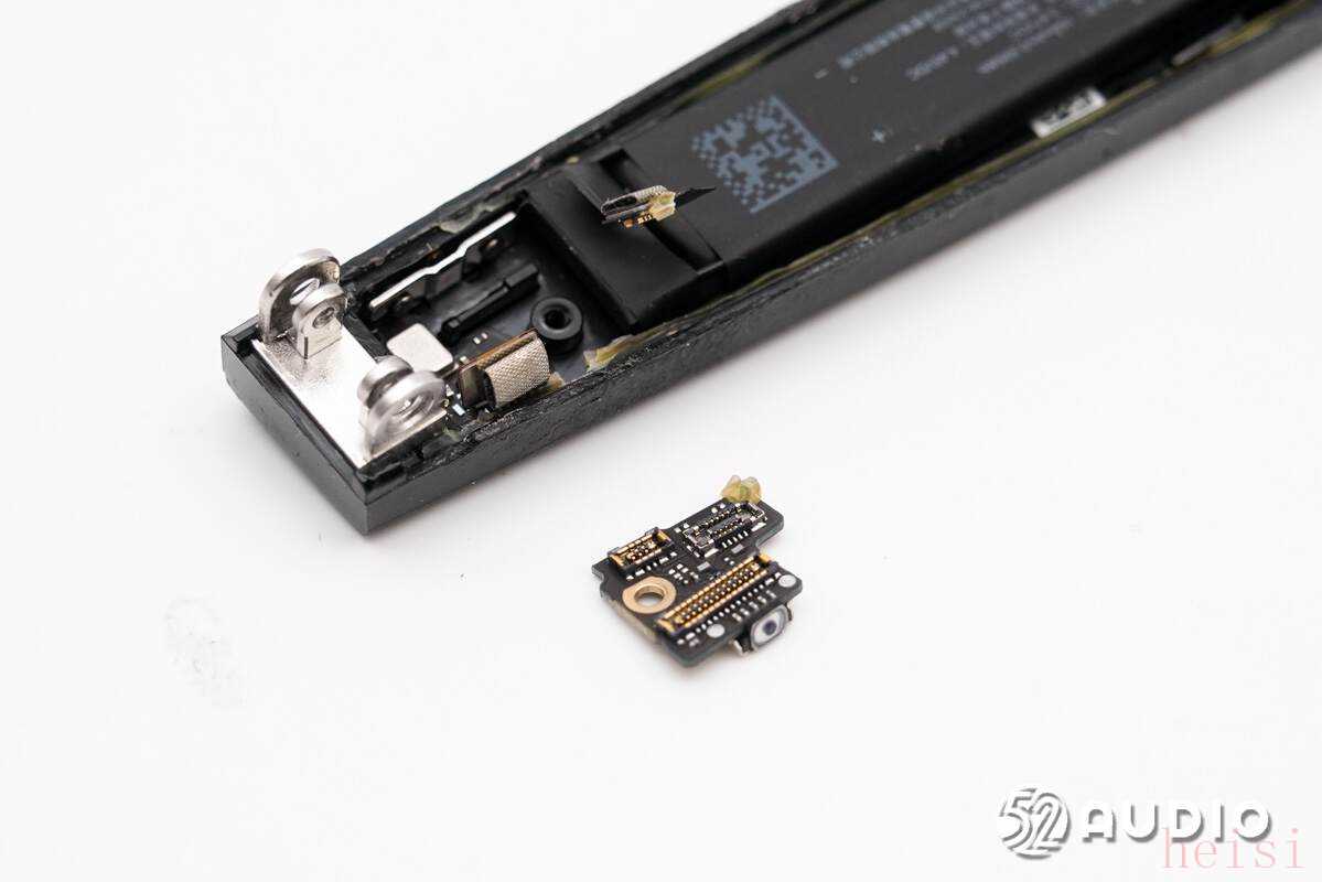 取出镜腿内部的电池单元。