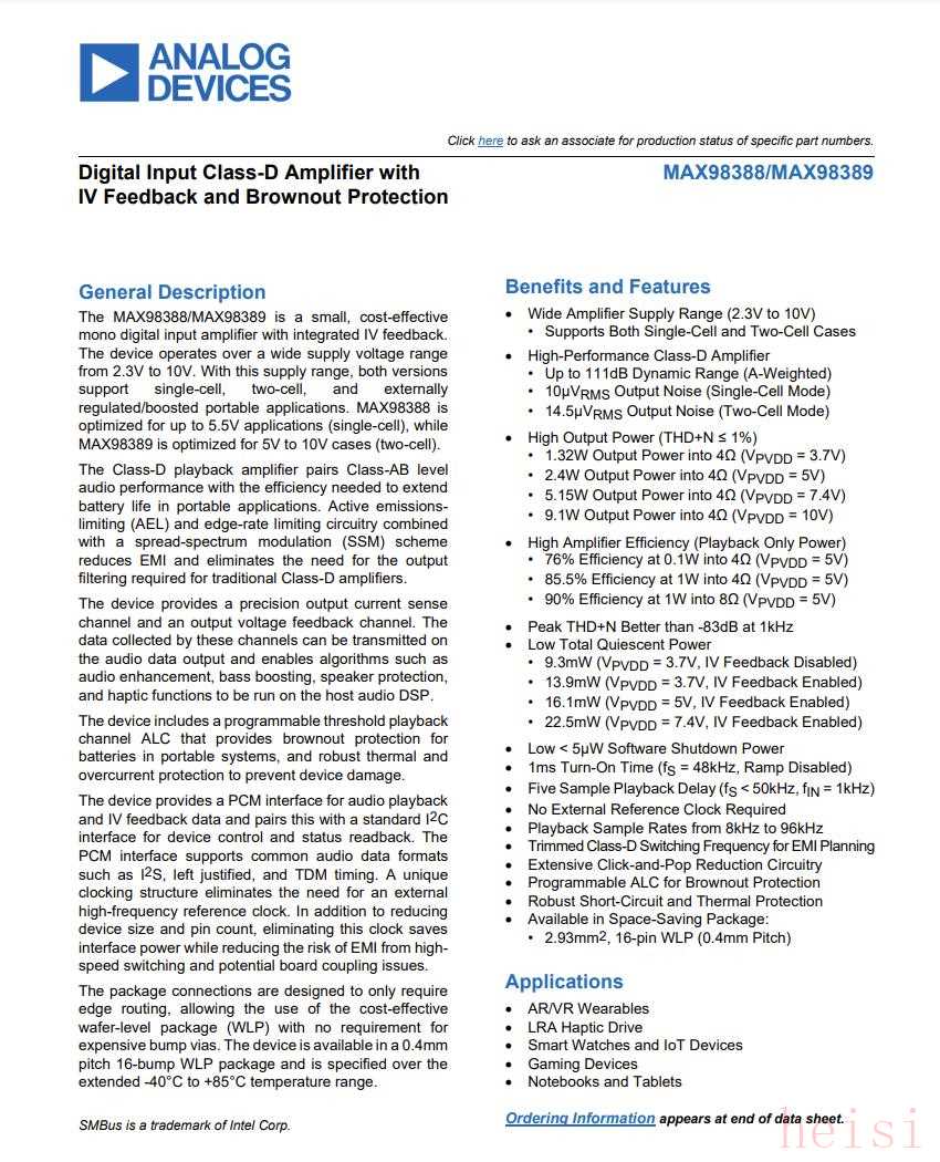 ADI亚德诺MAX98388详细资料图。