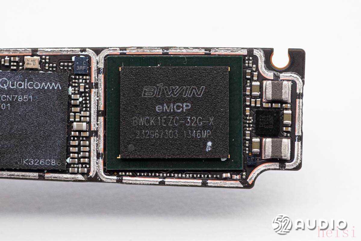丝印“BWCK1EZC-32G-X”的BIWIN佰维eMCP存储器,容量:32G。下方是高通第一代骁龙AR1平台。