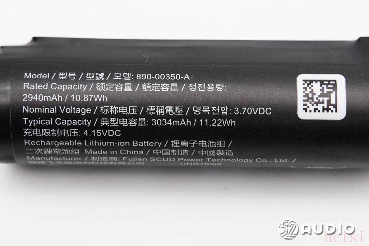 锂电池外部标签上信息,型号:890-00350-A,额定容量:2940mAh 10.87Wh,标称电压:3.7V,典型容量:3034mAh 11.22WhWh,充电限制电压:4.15V。