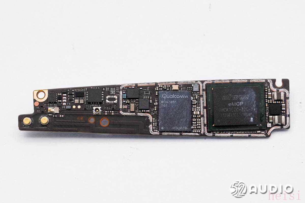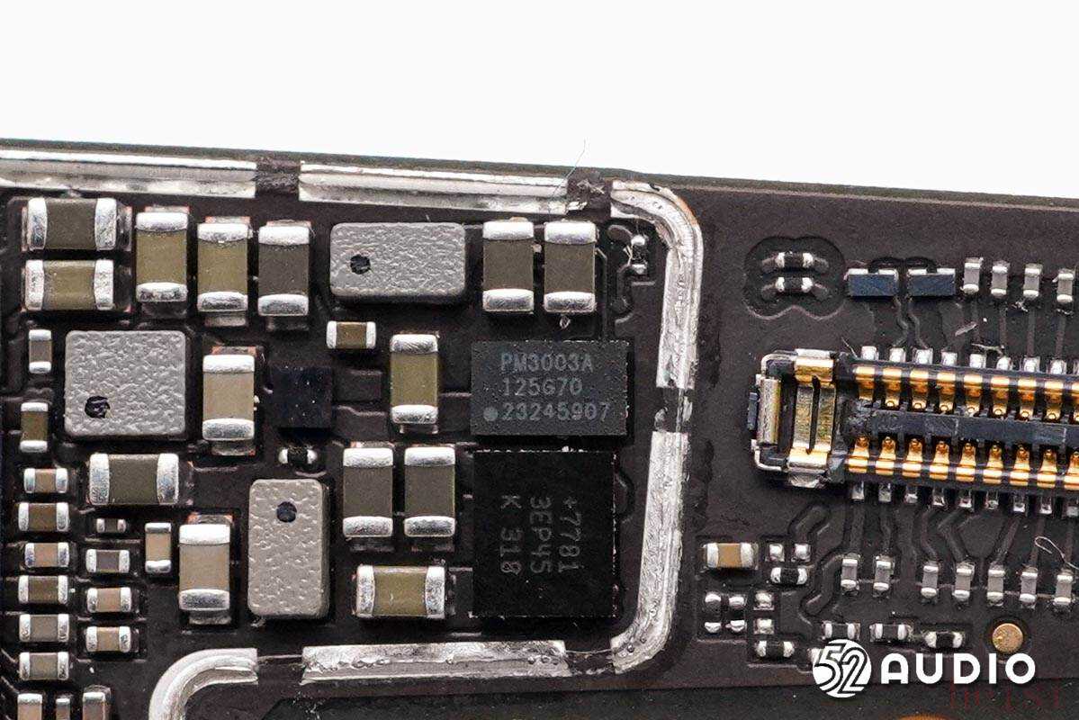 其他方面,右侧镜腿内置德赛160mAh锂电池组,小板上采用了ADI亚德诺MAX98388数字输入D类放大器;左侧镜腿内置主板单元,搭载了高通第一代骁龙AR1处理器和BIWIN佰维eMCP存储器,采用了亚德诺MAX98388放大器、亚德诺MAX77813升降压转换器,高通PM3003A电源管理芯片、高通PMAR2130 PMIC、高通WCN7851 WiFi芯片等。