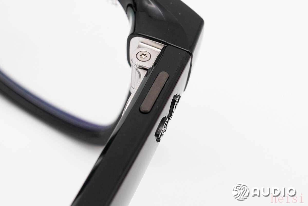 左侧镜腿内置的镭雕G337o的MEMS麦克风。