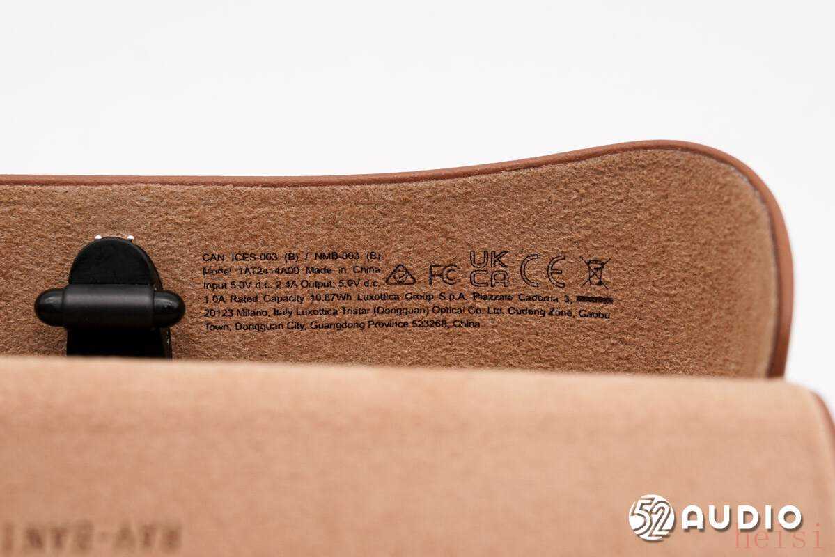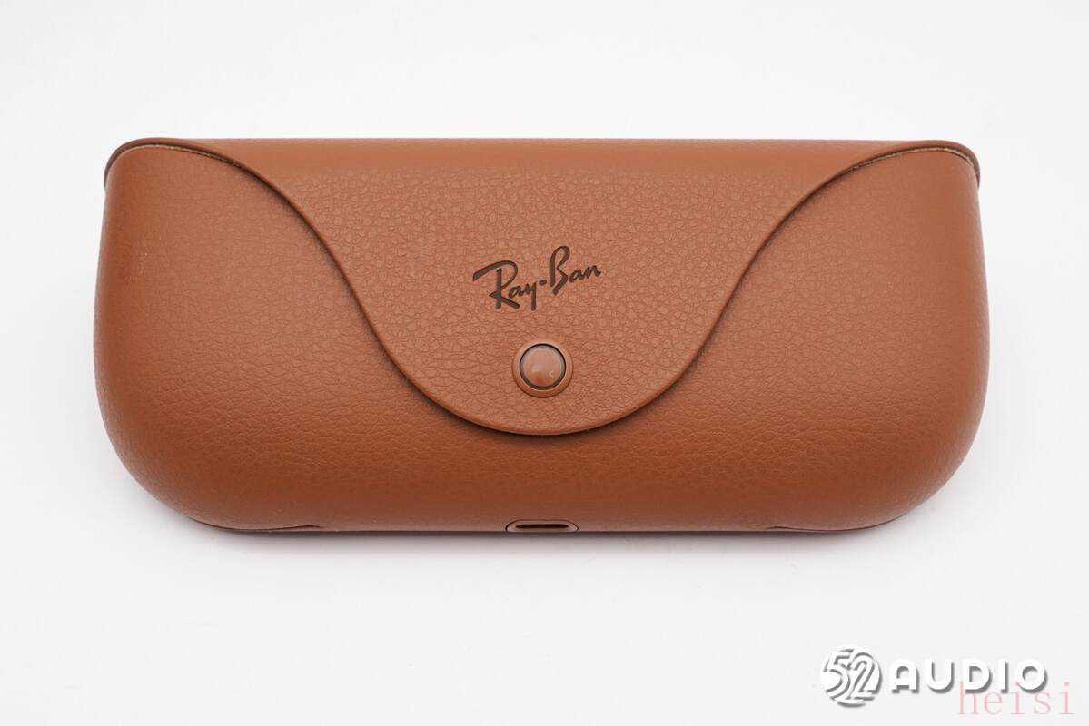 雷朋Meta Wayfarer智能眼镜在外观方面,体积与普通的太阳镜已经非常接近,单机重量(无镜片)约为40.8g,能够提供较为舒适的佩戴体验。此次拆解的黑色镜框,采用了亮黑的烤漆工艺处理,拥有出色的质感。标配的眼镜盒,采用耐磨耐划的皮革材质,外观时尚精致;同时支持移动充电,有效提升续航体验。