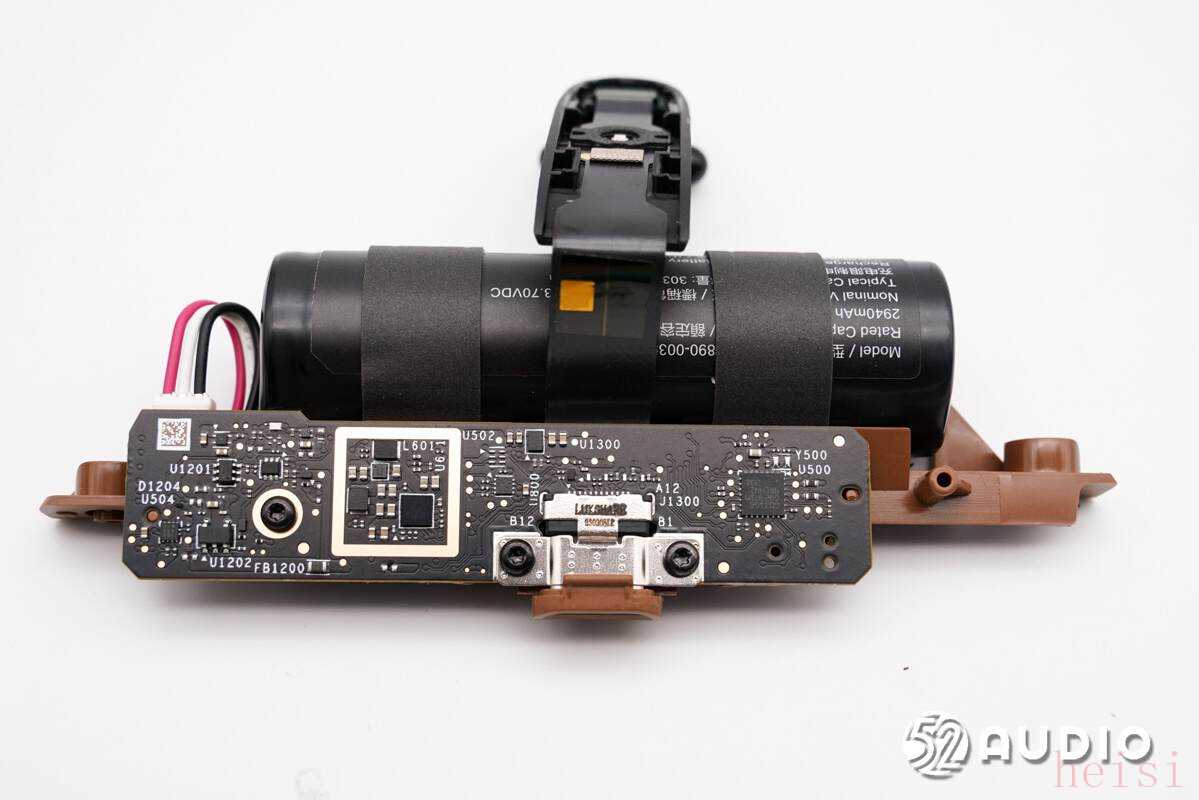 支架上的主板和电池单元结构一览。电池导线与主板通过插座连接。