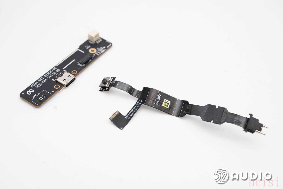 镜腿内部的小板结构特写,与排线通过BTB连接器连接。