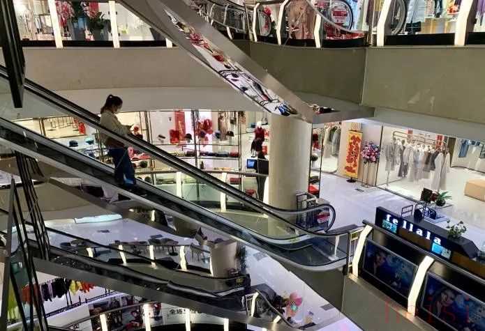 下午两点,经过工作人员红外线体温测试步入南国花锦购物中心,一楼的国际化妆品区内,兰蔻、香奈儿、DIOR等多种国际大牌化妆品专柜里,护肤品、彩妆、口红等商品一字排开,有不少的年轻顾客正逛店、挑选、试妆。沿电梯而上,无论是二楼的精致女装、三楼的女鞋女包,还是四楼的时尚男装、五楼的童装,进驻的几乎所有品牌店都灯火通明,货品充盈。