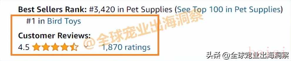 举个例子亚马逊美国站上鸟类玩具畅销榜第一、评级4.5以上的产品lovyCoCo 的鸟撕碎觅食玩具/咀嚼悬挂玩具。