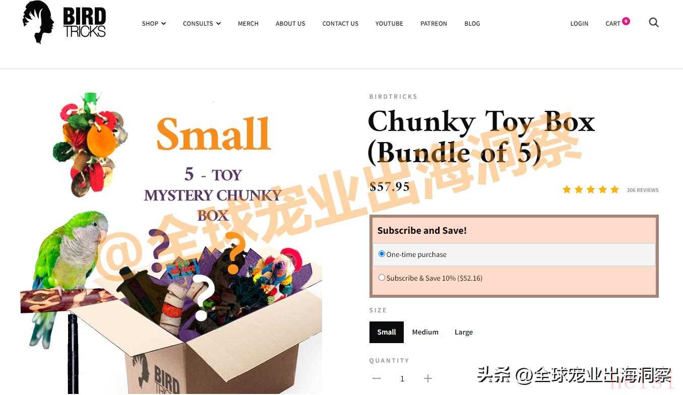 举个例子Bird Tricks推出的5个玩具神秘觅食盒,其中包含惊喜玩具。消费者可以购买单个盒子,也可以选择按月订阅计划。