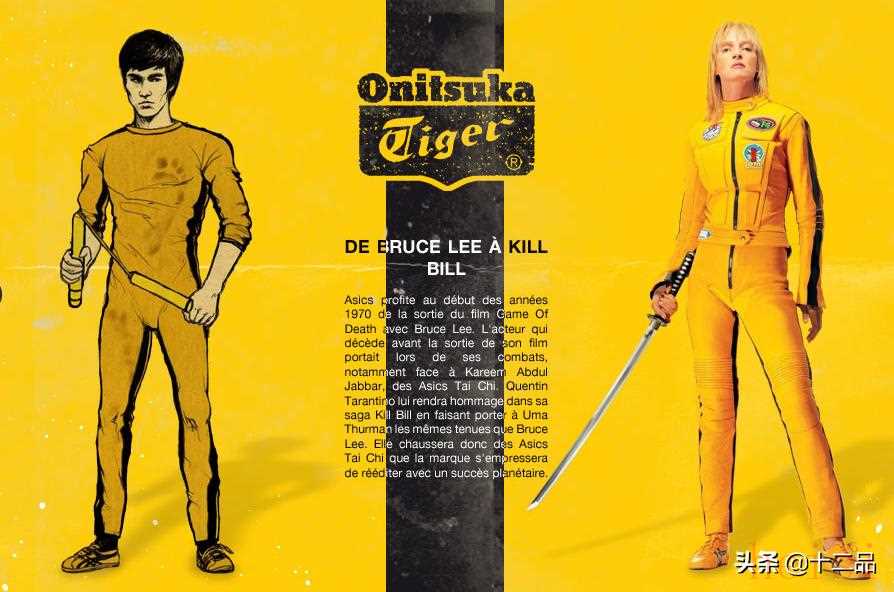 Bruce Lee生前所钟爱,而当中的taichi model,更已成为北京奥运新项目“武术太极拳”的指定运动鞋。你可以不知道《Kill Bill》,但Bruce Lee的至爱Asics Onitsuka Tiger就一定不可不识。起来,Bruce Lee的确是asics的忠实Fans,其在多种场合和影片中都有穿着,令人印象比较深刻的就是他在《Game of Death》当中脚下的那双asics Taichi Model。三十年后,Uma Thurman在影片《Kill Bill》再次Cos了这一经典造型,而脚下的依旧是那双Taichi Model。足可见这双鞋的经典