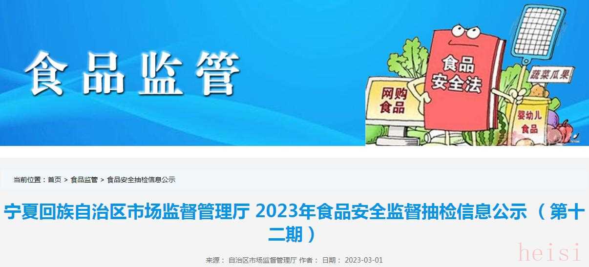 中国质量新闻网讯 2023年3月1日,宁夏回族自治区市场监督管理厅网站发布2023年食品安全监督抽检信息公示(第十二期)。