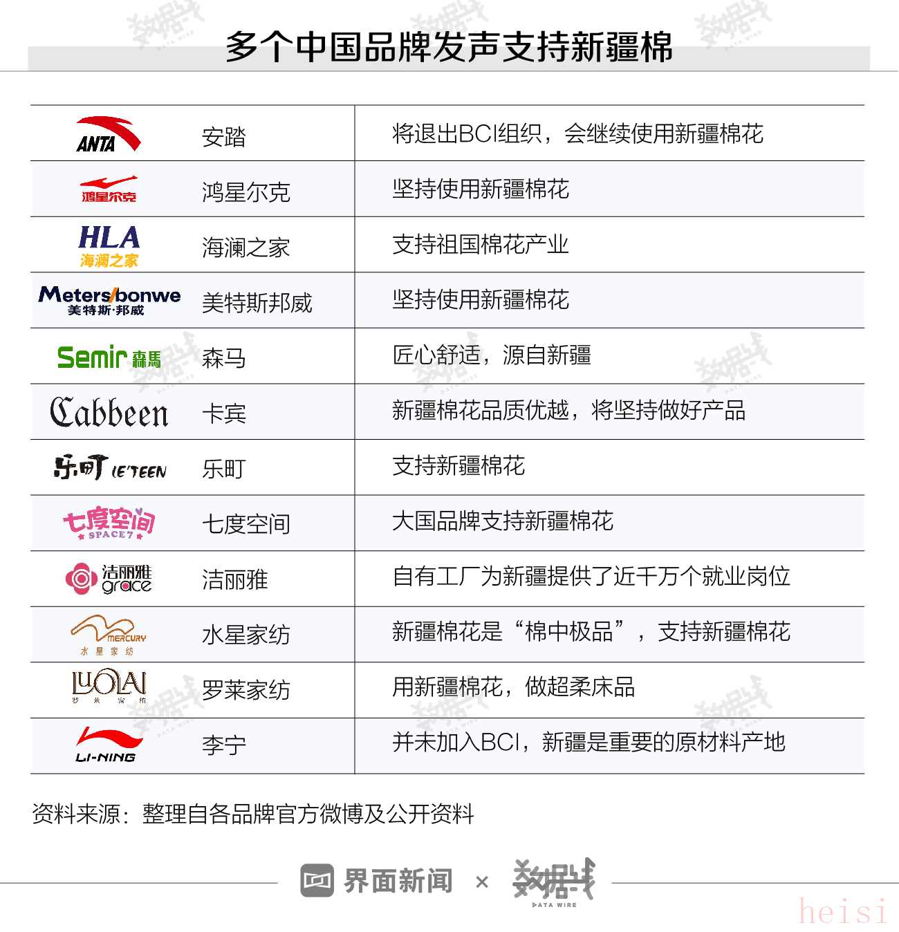据界面数据不完全统计,目前已有12家中国品牌发声,力挺新疆棉花。