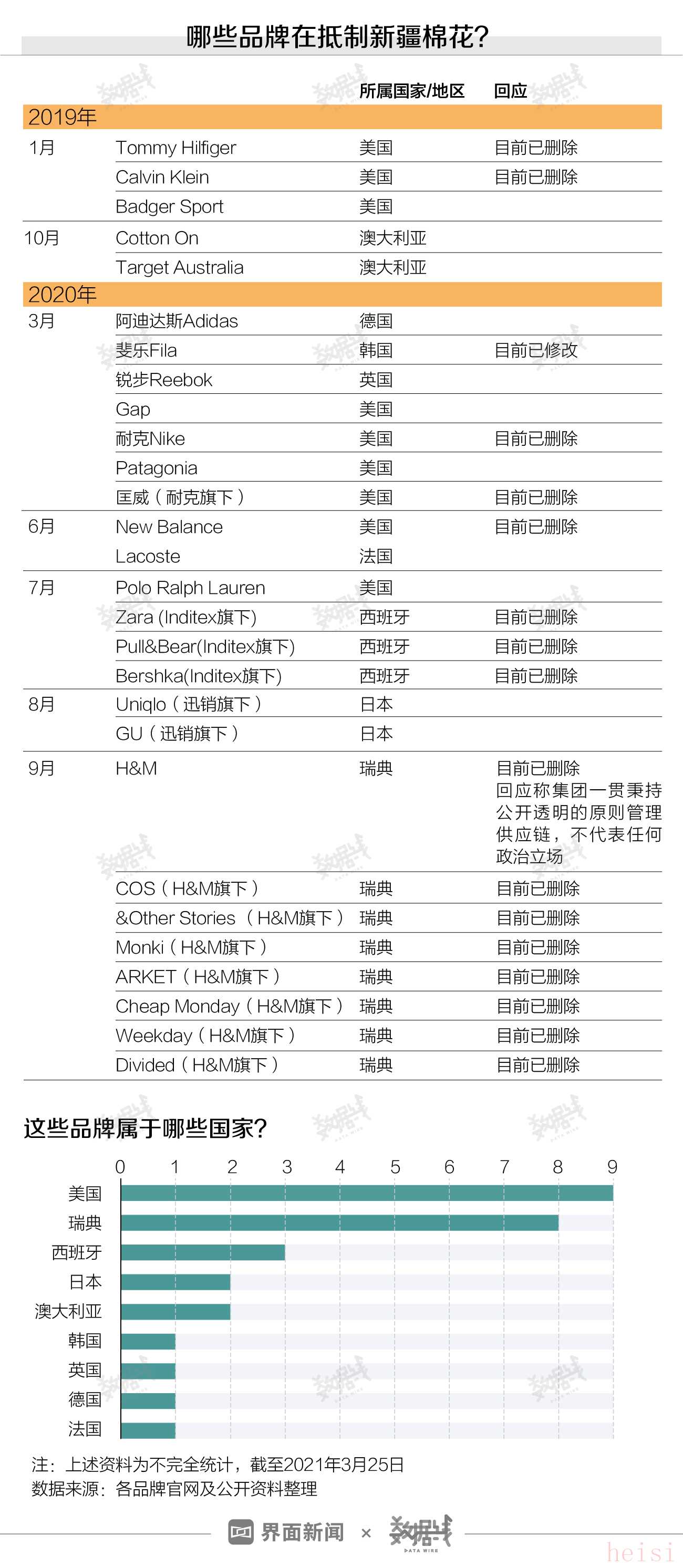 这部分信息指向了近年来(尤其是在新疆棉事件后)中国消费者、政府及相关机构对某些欧美品牌的抵制行为。
