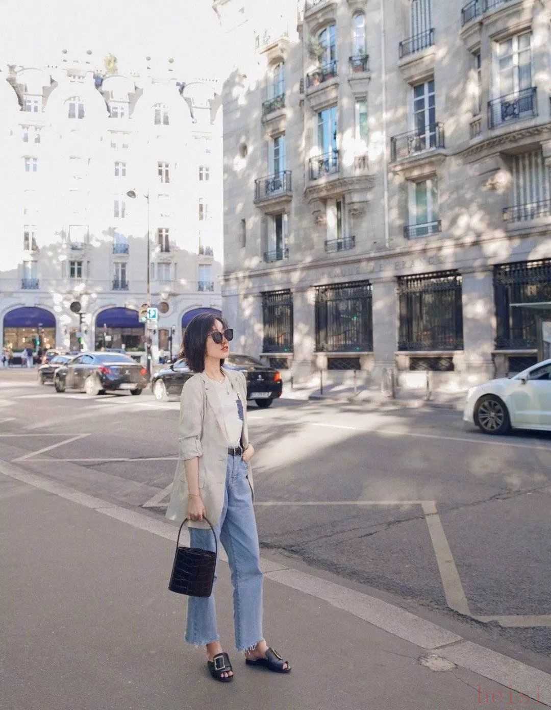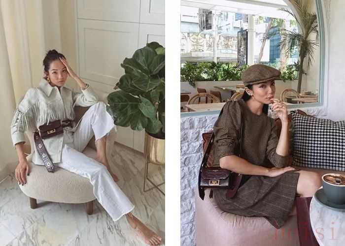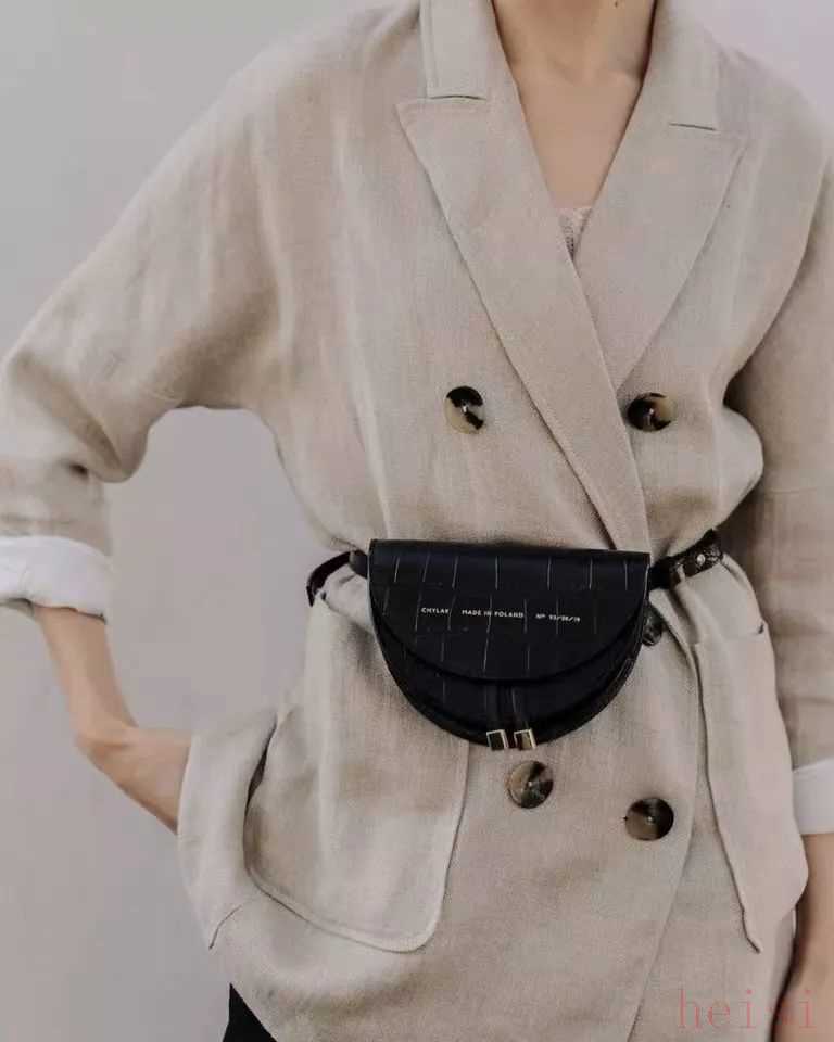 可斜挎也可系在腰上,Yoyo Cao都示范过,有一种酷酷的优雅感。