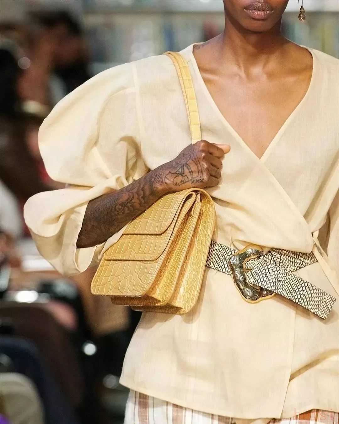 哑光金属锁扣保留了BV家极简有格调的基因,奶油色也特别耐看,刷新了好多人对鳄鱼压纹老气的印象。海淘价15144元